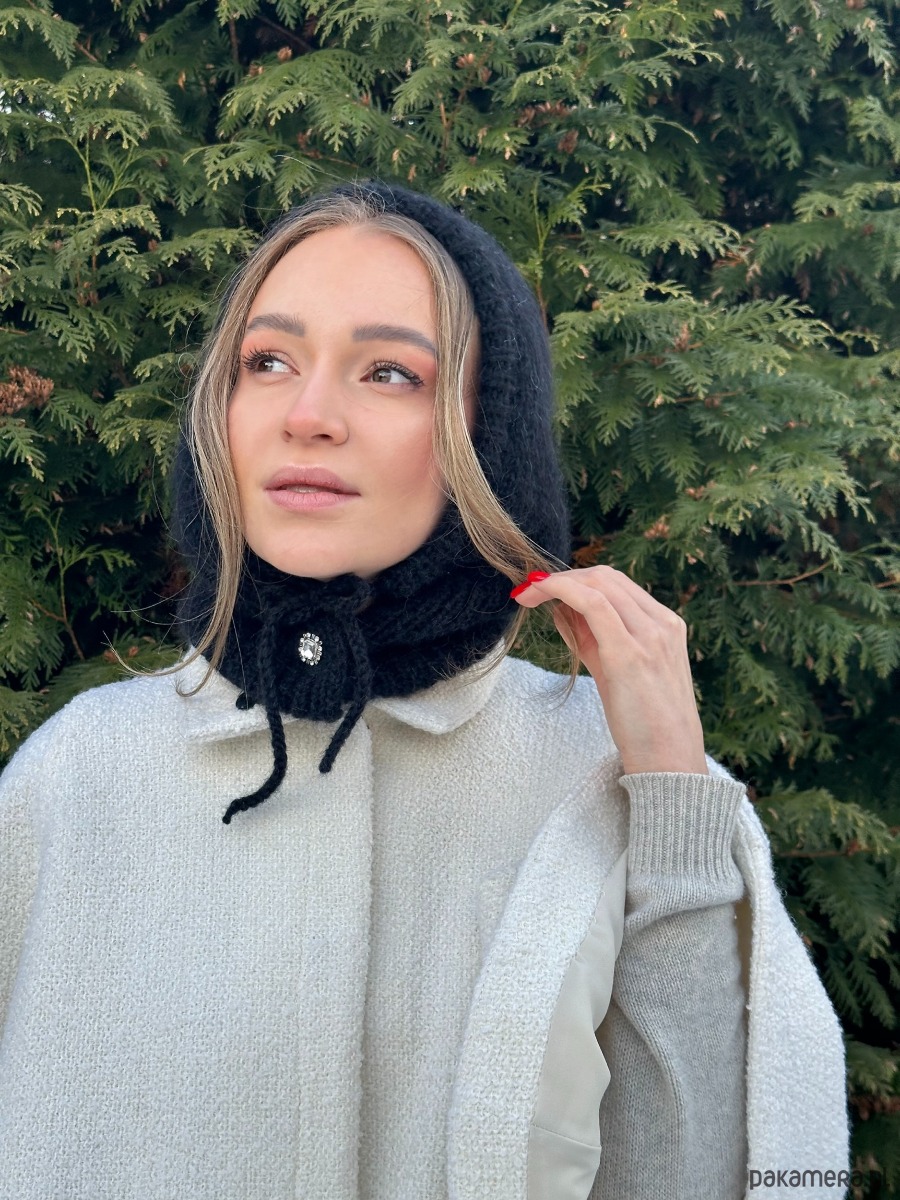 Lekka jak mgiełka balaclava wykonana z delikatnej i miękkiej włóczki, która jest miła dla skóry, lekka i nie gryzie 🤎