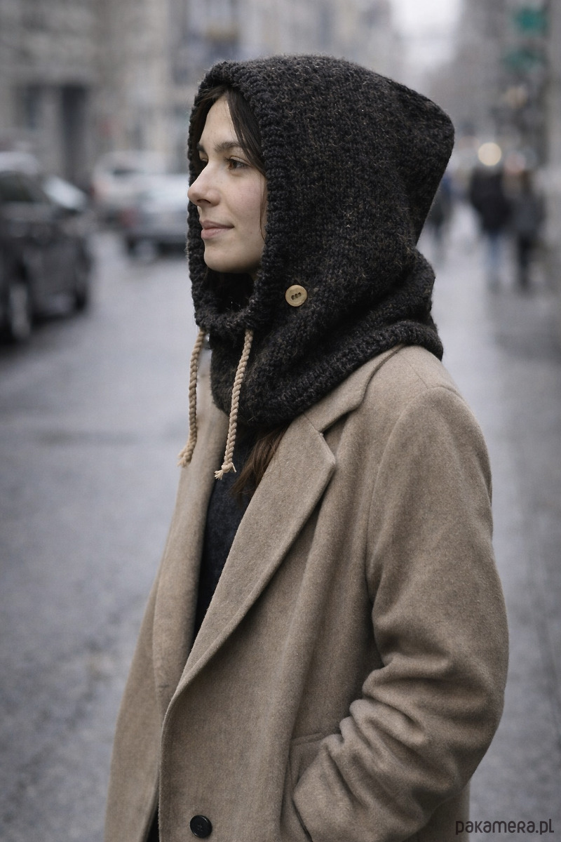 Luźny fason kapturo-komina zapewnia komfort noszenia bez uczucia ucisku.