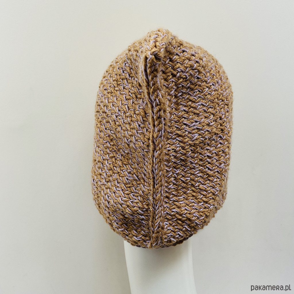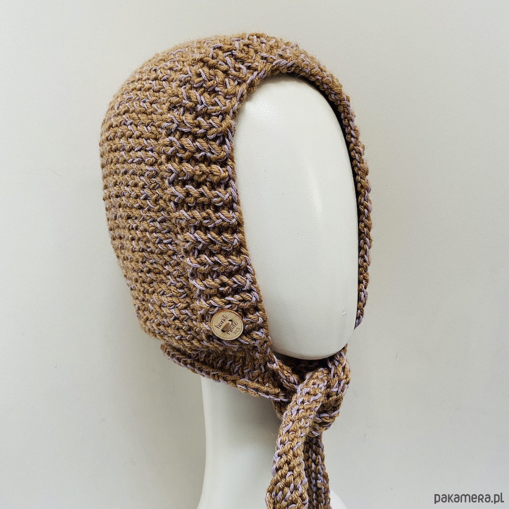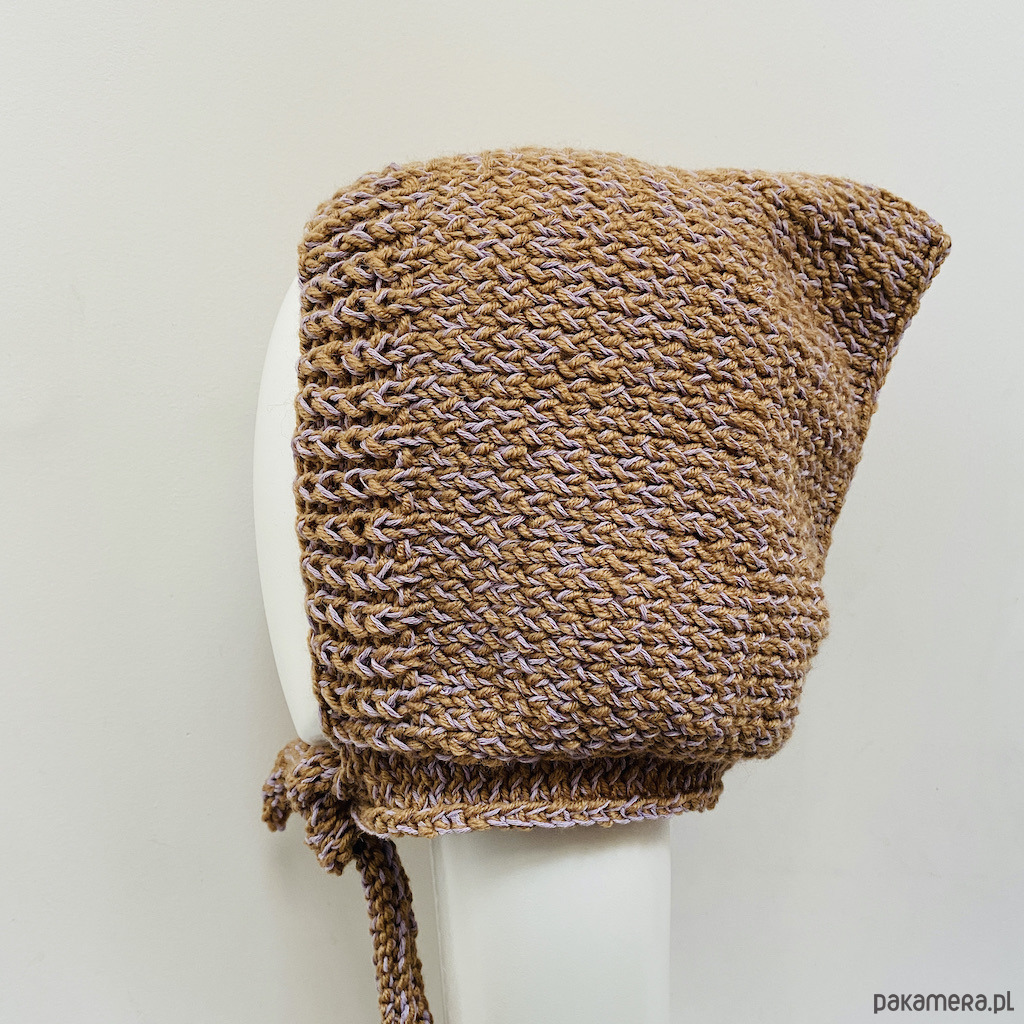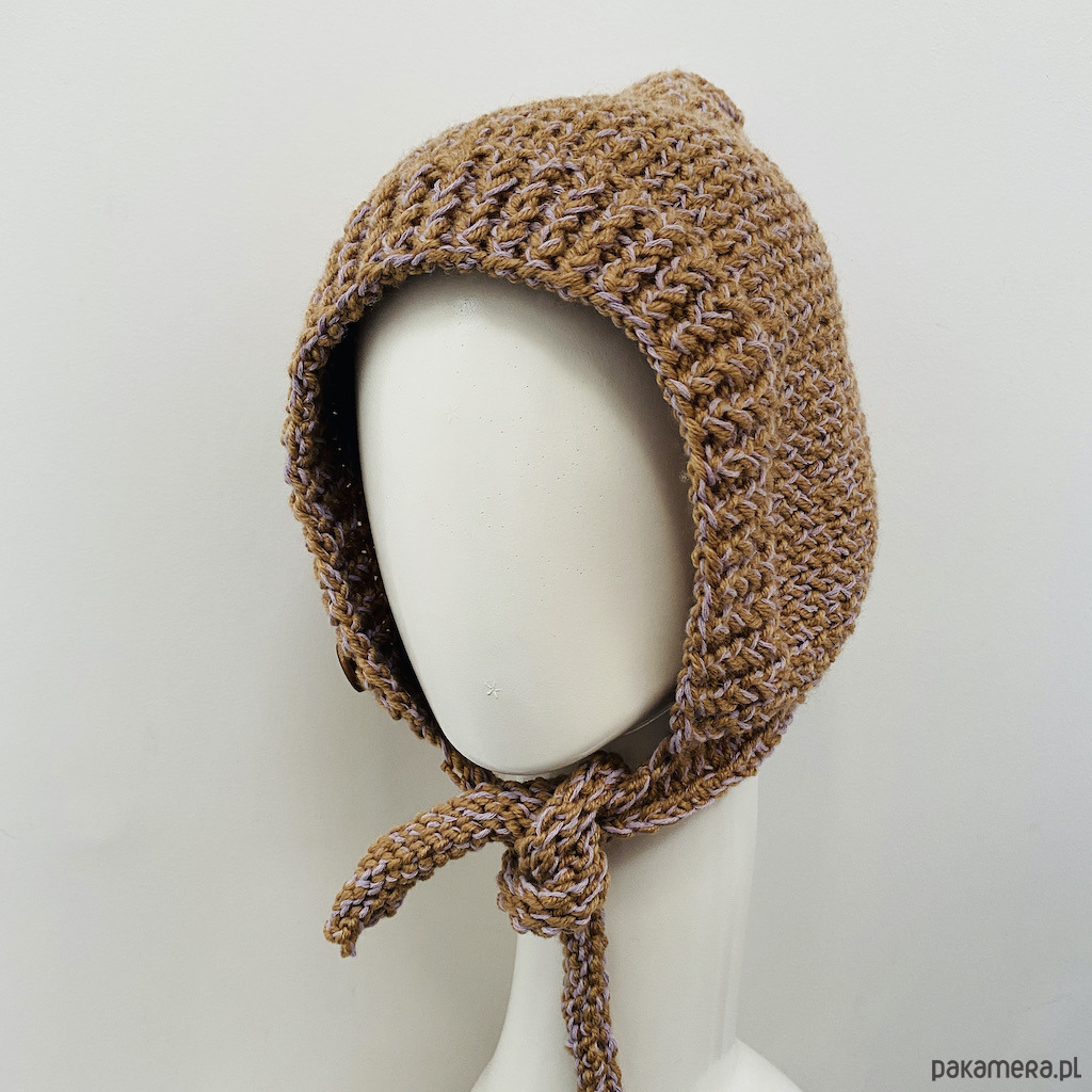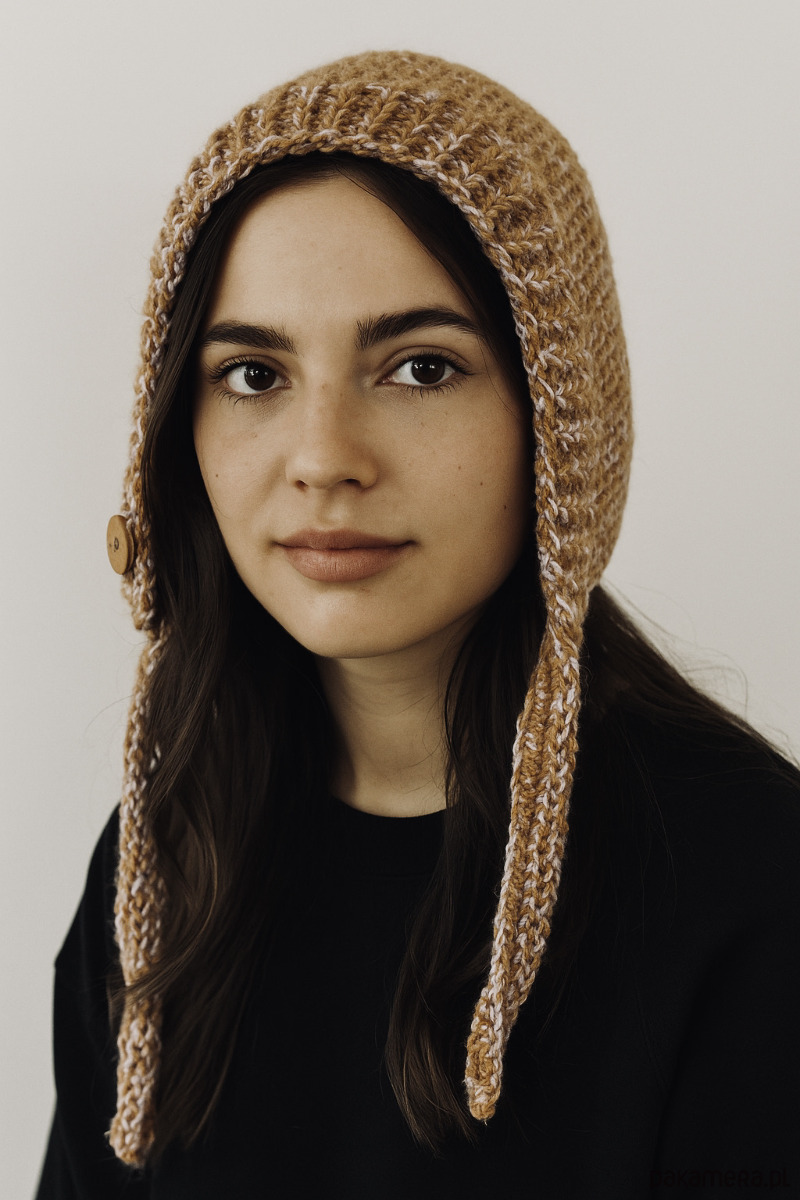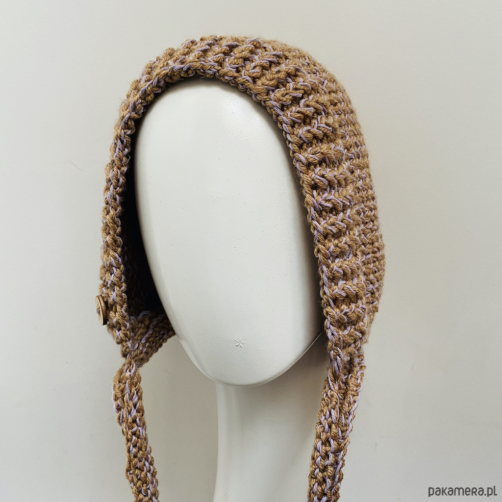 Kaptur wykonałam ręcznie na drutach z miękkiej, ciepłej i przyjemnej w dotyku włóczki, składającej się z dwóch nitek: pierwsza to mieszanka 49% wełny merino i 51% akrylu, druga – 100% bawełna. Połączenie tych włókien sprawia, że kaptur jest jednocześnie lekki, oddychający i elastyczny, a przy tym dobrze chroni przed chłodem. Delikatna struktura dzianiny dopasowuje się do kształtu głowy, zapewniając komfort noszenia bez uczucia ucisku.
