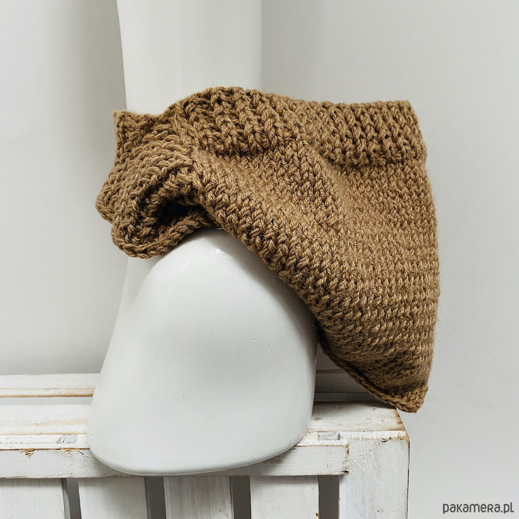 Kaptur wykonałam ręcznie na drutach z miękkiej, ciepłej i przyjemnej w dotyku włóczki - mieszanki 49% wełny merino i 51% akrylu. Połączenie tych włókien sprawia, że kaptur jest jednocześnie lekki, oddychający i elastyczny, a przy tym dobrze chroni przed chłodem. Delikatna struktura dzianiny dopasowuje się do kształtu głowy, zapewniając komfort noszenia bez uczucia ucisku.