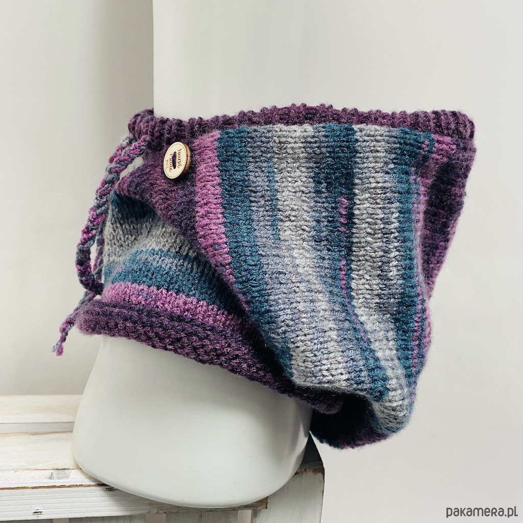 Kominiarkę oversize wykonałam ręcznie na drutach z miękkiej, kolorowej włóczki akrylowej. Certyfikat OEKO-TEX® Standard 100 potwierdza, że jest produkty z niej wykonane są bezpieczna dla zdrowia.