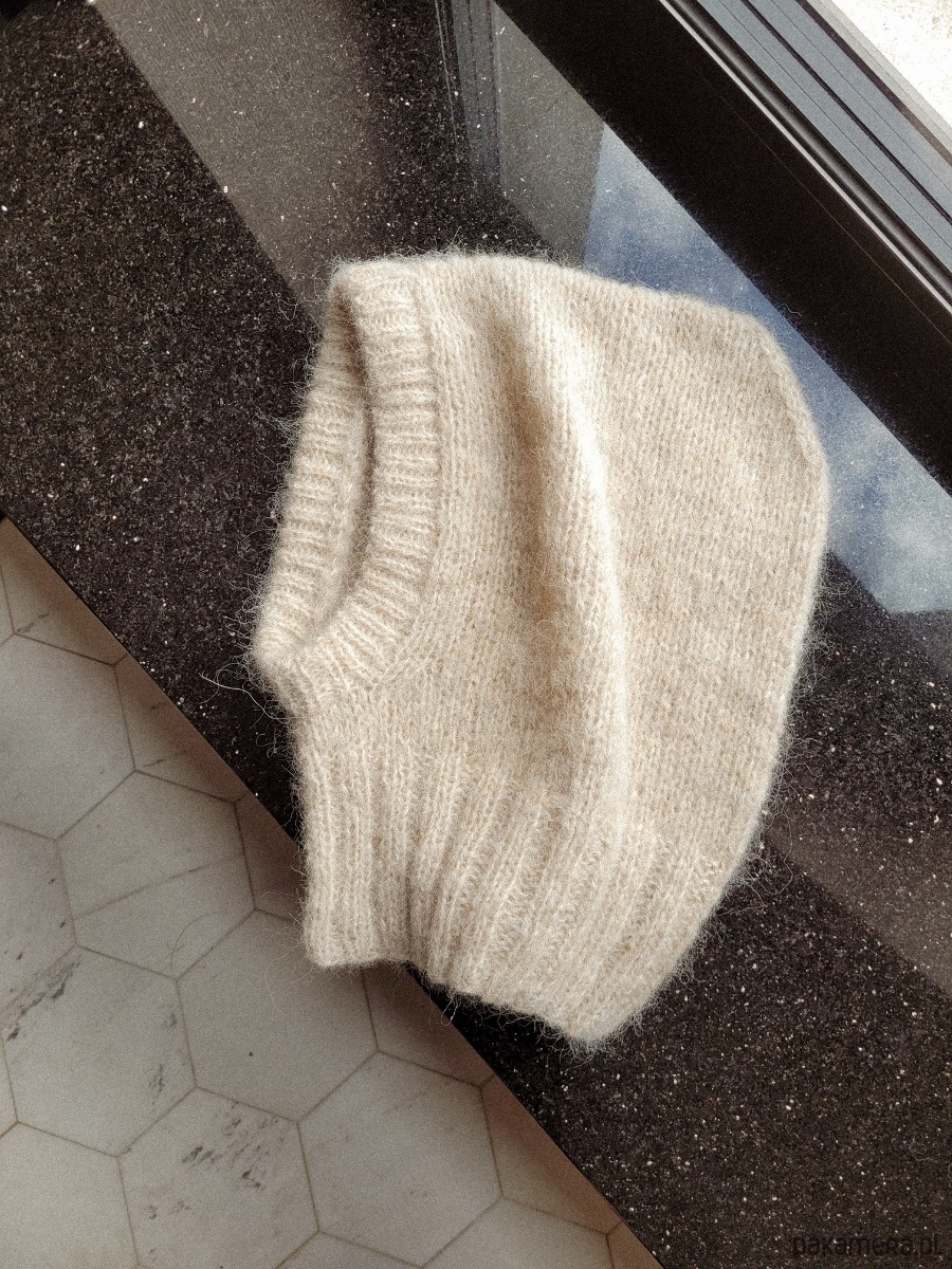 Fluffy Cloud Balaclava to ręcznie dziergana kominiarka. Będzie dla Ciebie idealna jeśli nie przepadasz za czapkami. Ogrzeje i otuli Twoją głowę i szyję - nie elektryzując włosów i nie przygniatając ich. Włókna alpaki i jedwabiu morwowego są lekkie jak chmurka a jednocześnie bardzo ciepłe, miękkie i wytrzymałe.