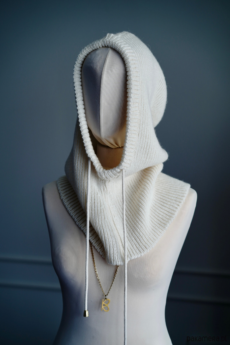 Ciepła balaklawa z możliwością regulacji sznurkami.