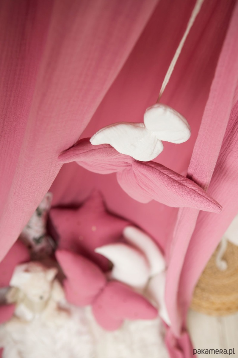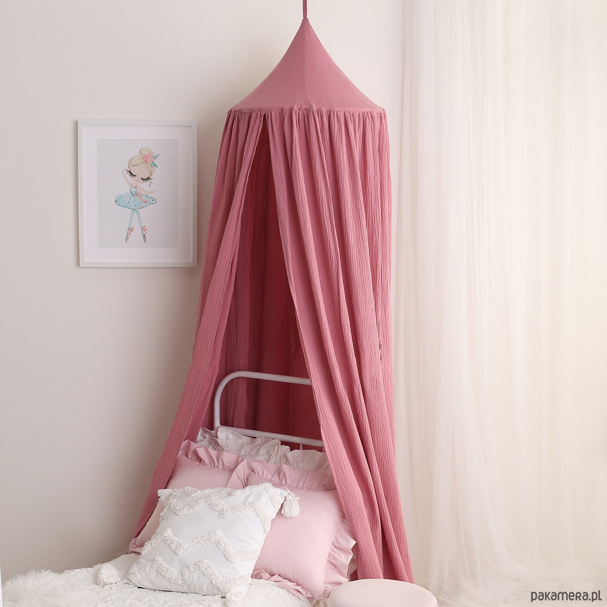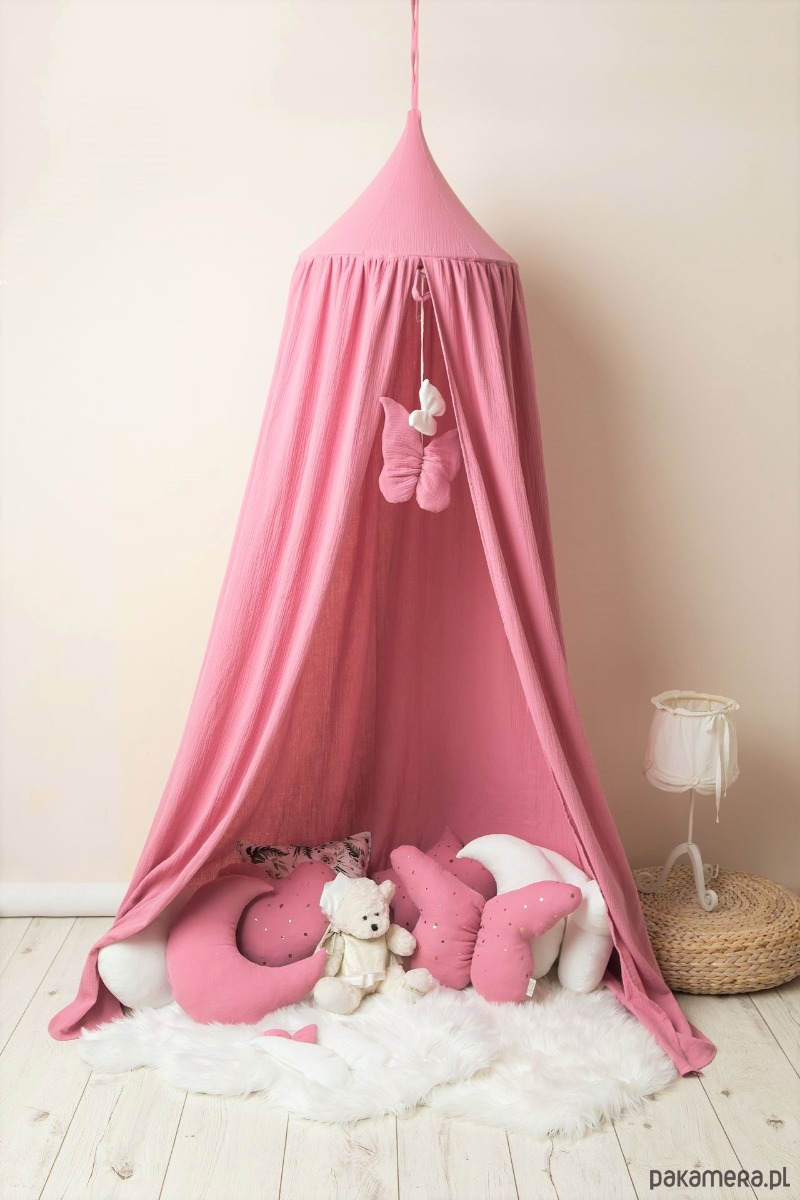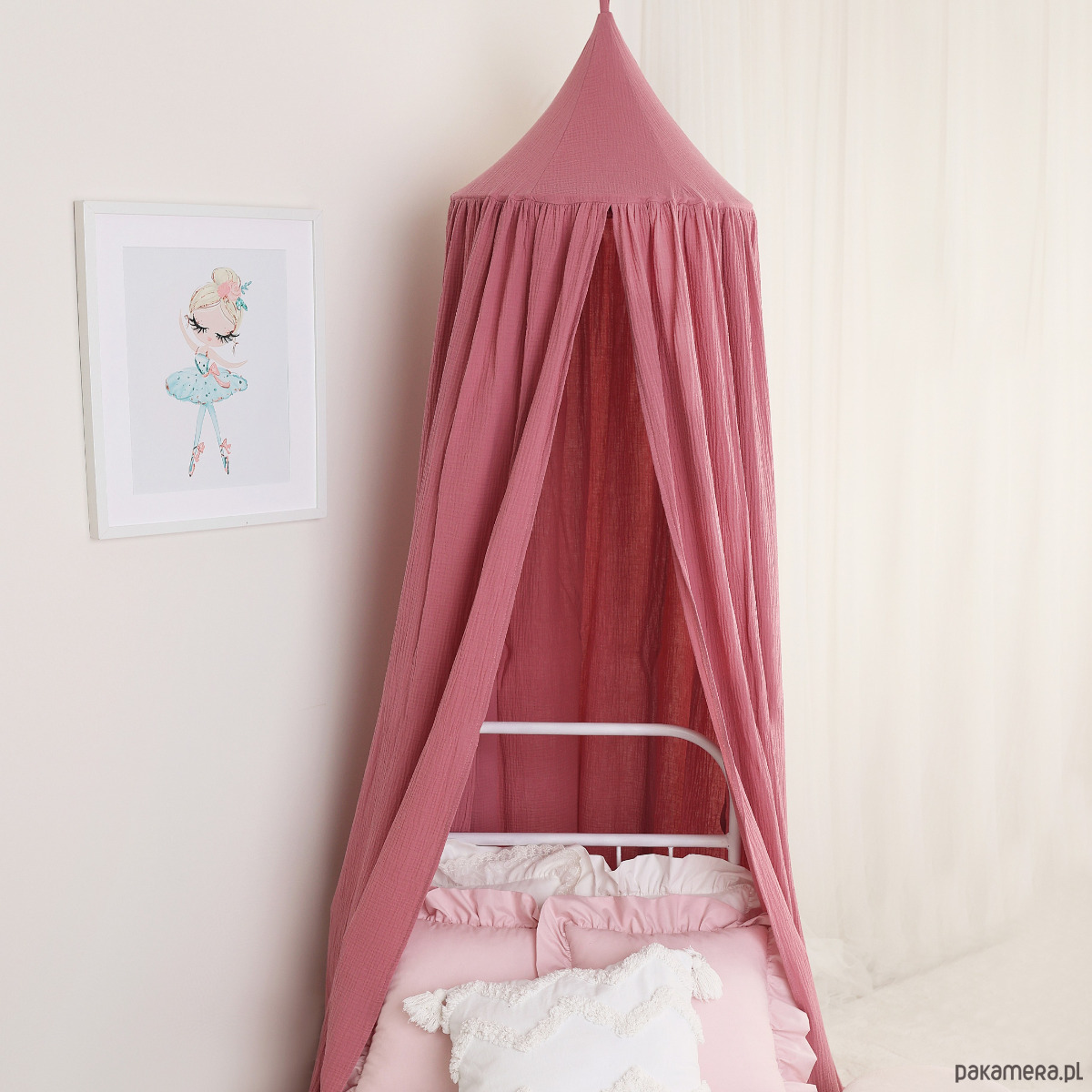 Baldachim to fantastyczny pomysł na stworzenia przytulnego miejsca w pokoju dziecka. Można go zawiesić nad łóżkiem dziecka, a powieszony w innym miejscu stanie się idealnym i cichym kącikiem zabawy.