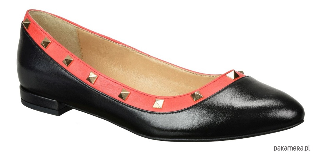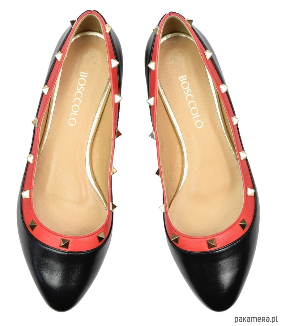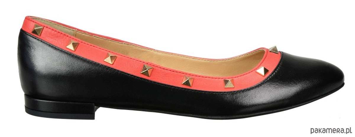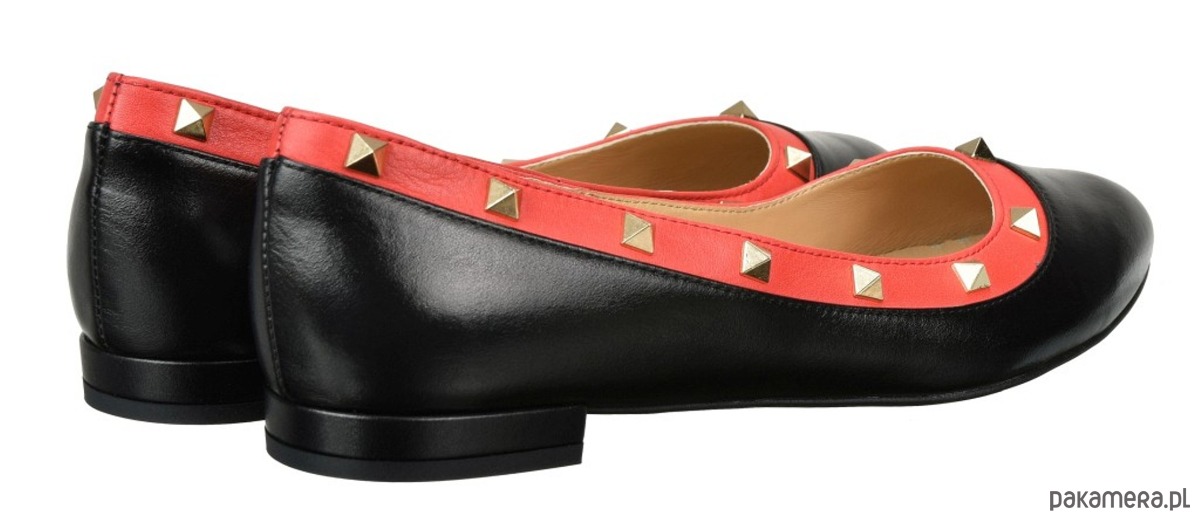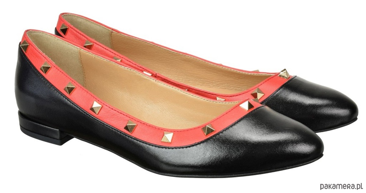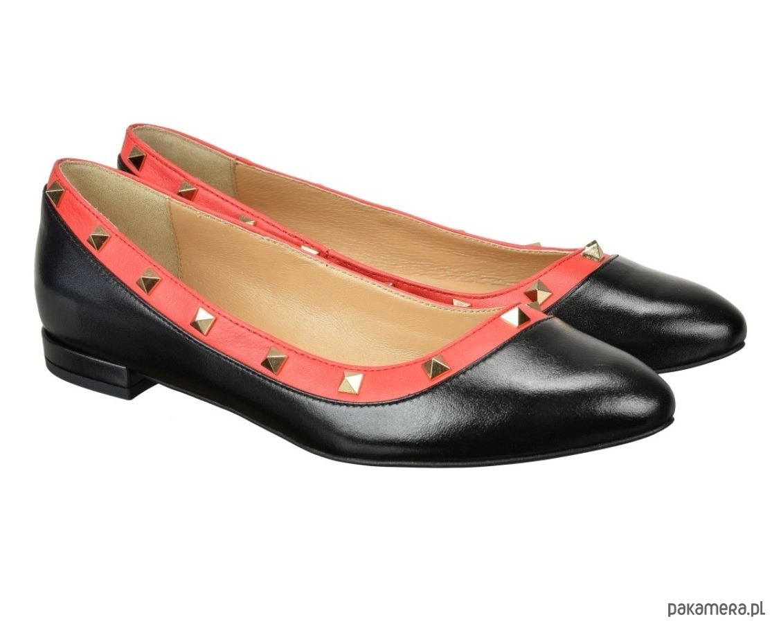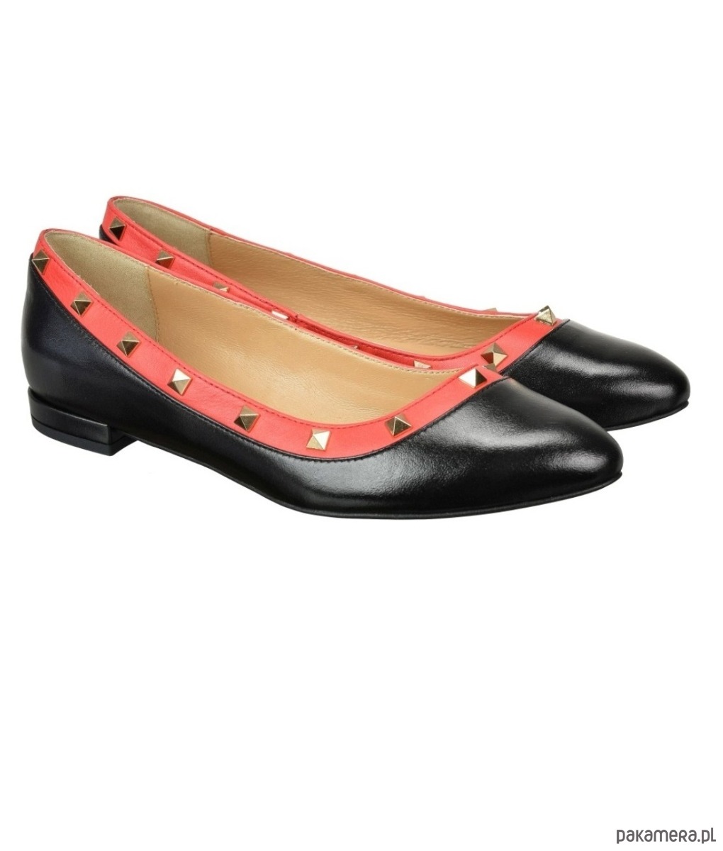 Baleriny ze skóry naturalnej, licowej,z ozdobnymi ćwiekami.