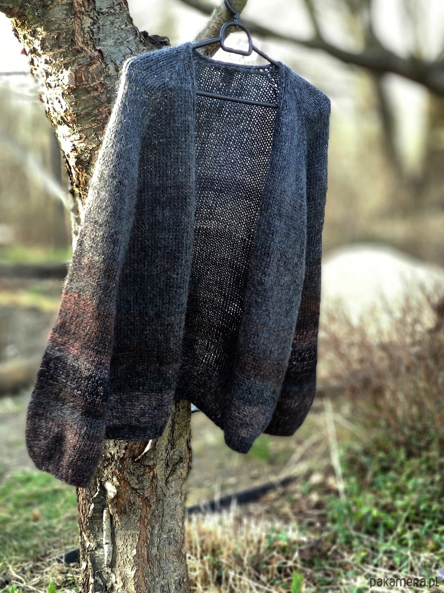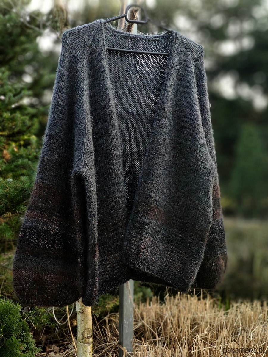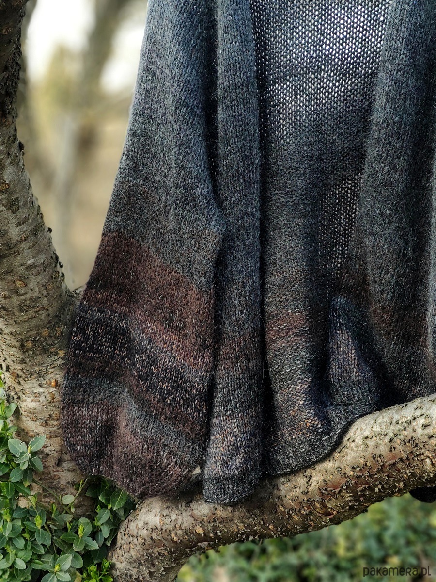 Wykonany ręcznie/ na drutach. Niezwykły (!) w dotyku: mięsisty, puszysty, miękki i lejący.