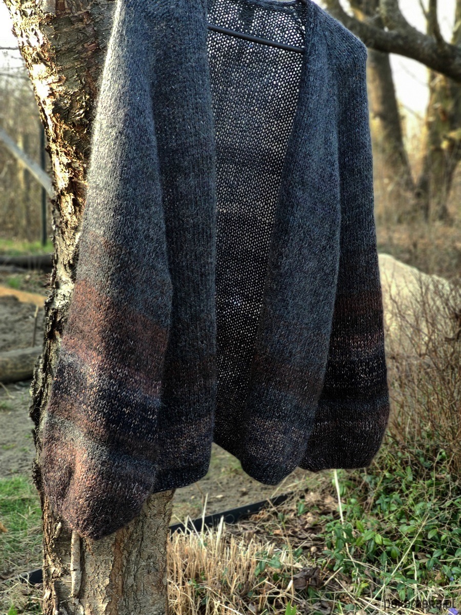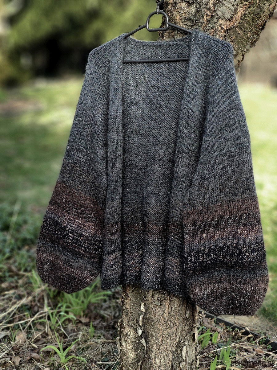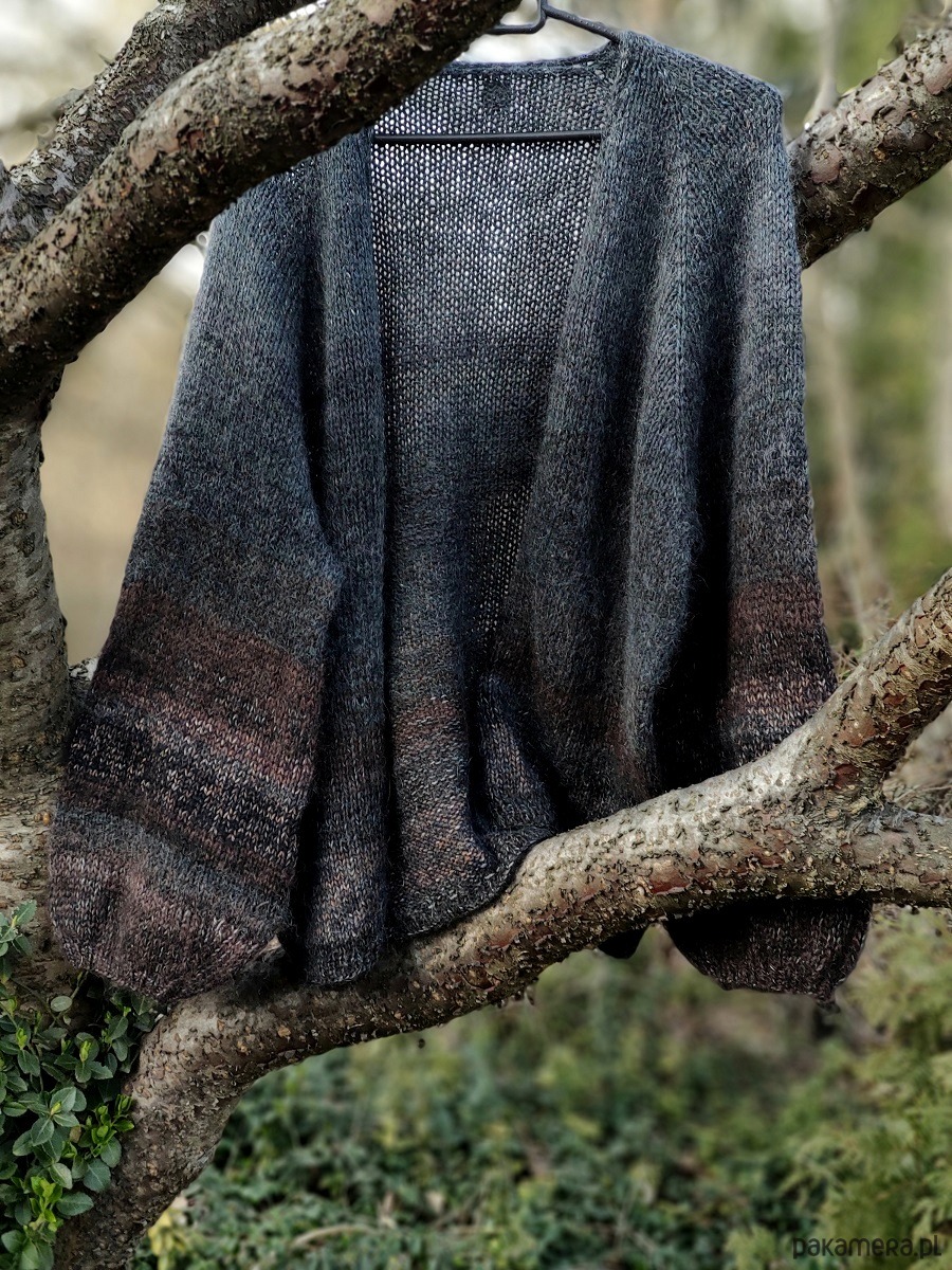 Wykonany ręcznie/ na drutach. Niezwykły (!) w dotyku: mięsisty, puszysty, miękki i lejący.