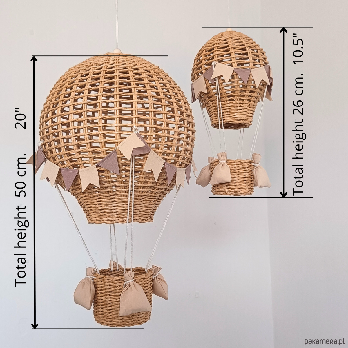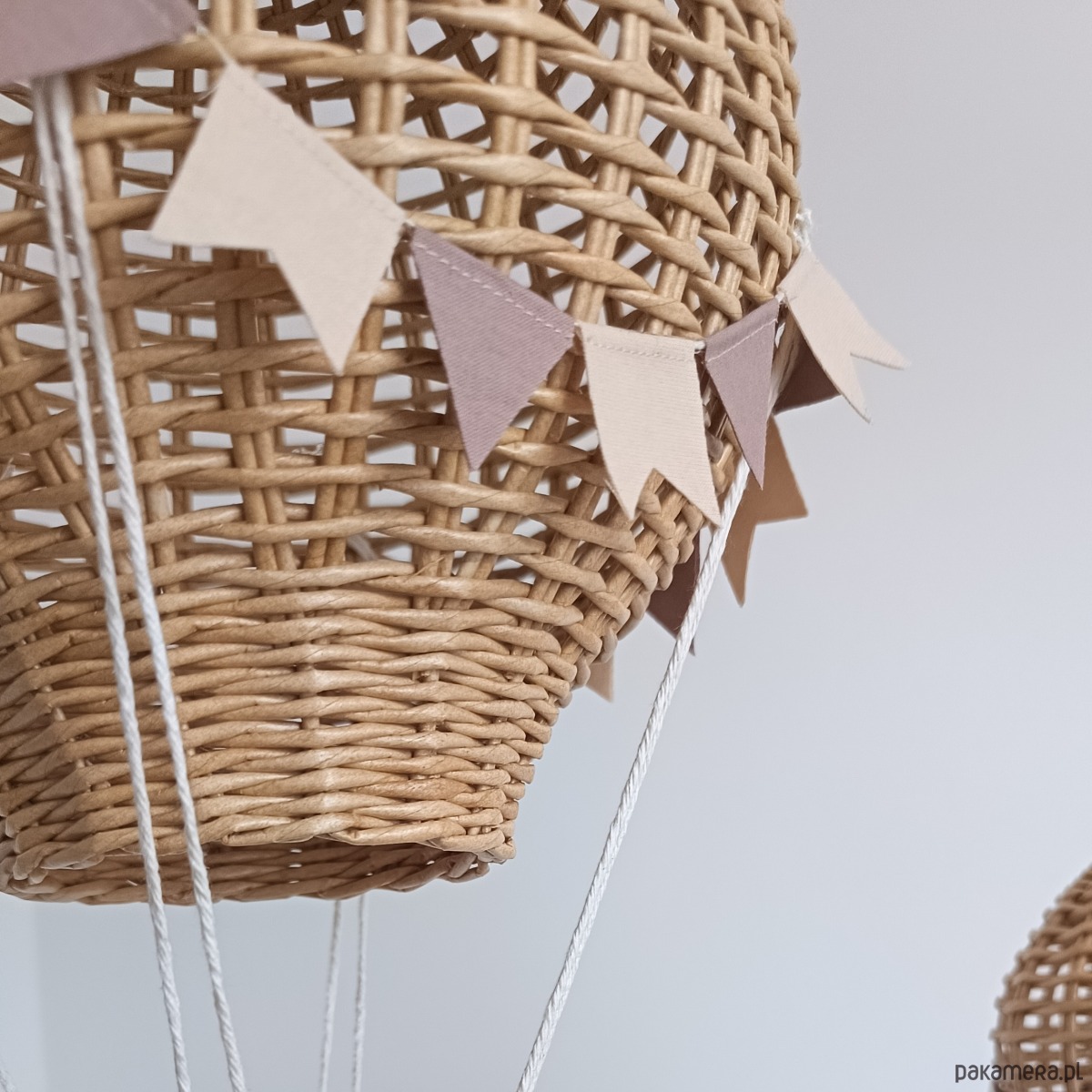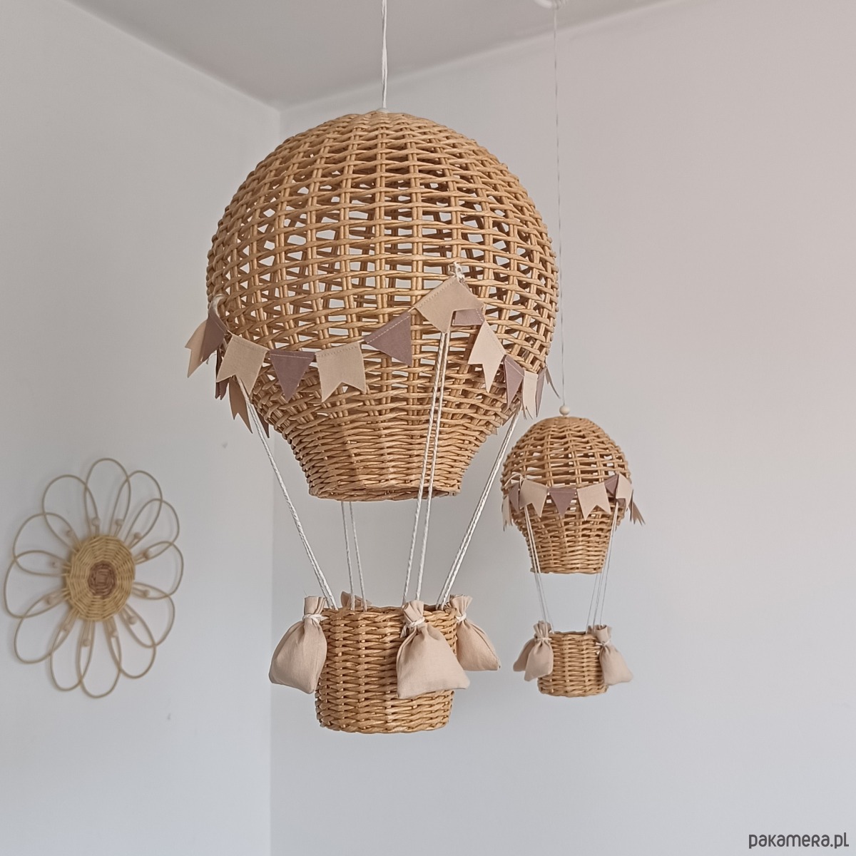 Każdy balon został ręcznie wykonany z wikliny papierowej, co nadaje mu lekkości i naturalnego uroku. Idealnie sprawdzi się jako dekoracja nad łóżeczkiem, półką lub w kąciku zabaw.
