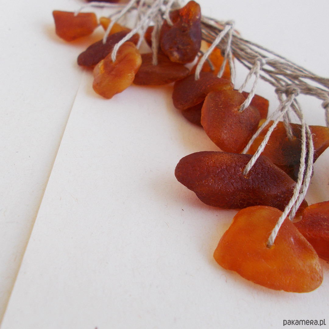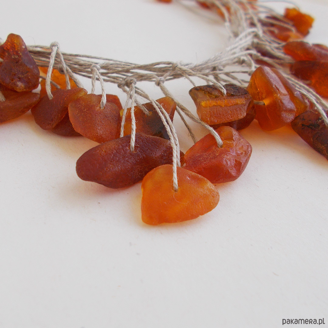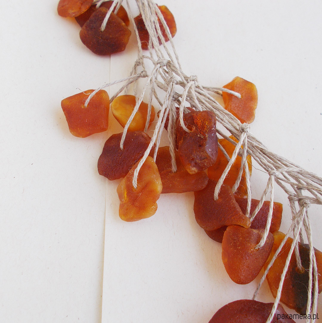 Oryginalny naszyjnik z surowym bursztynem na bazie naturalnego lnu