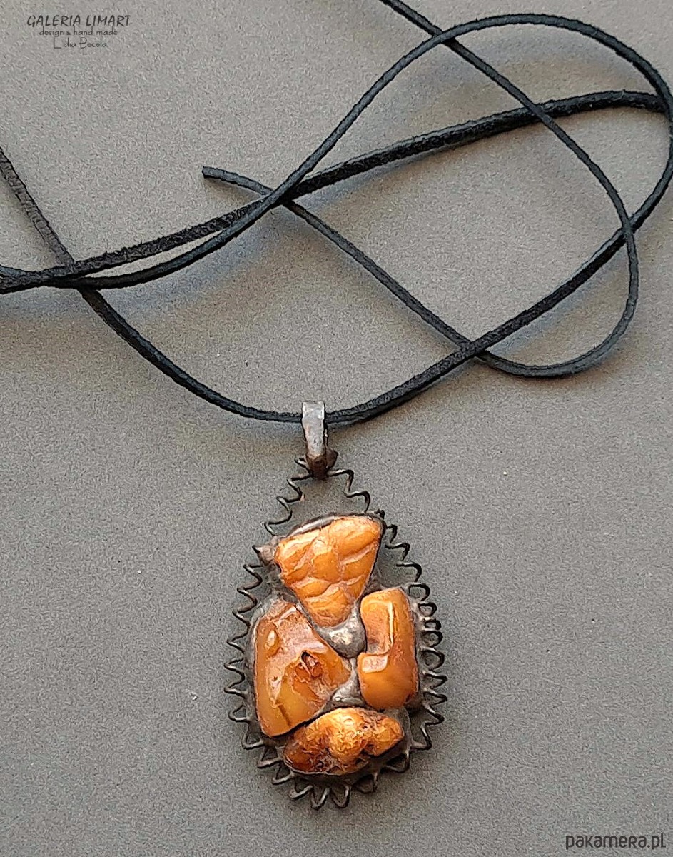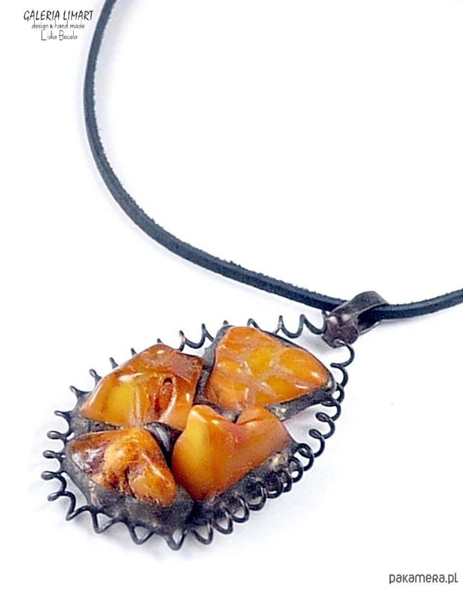 Bałtyckie bursztyny mleczne w unikatowym wisiorku ręcznie robionym prezent lux