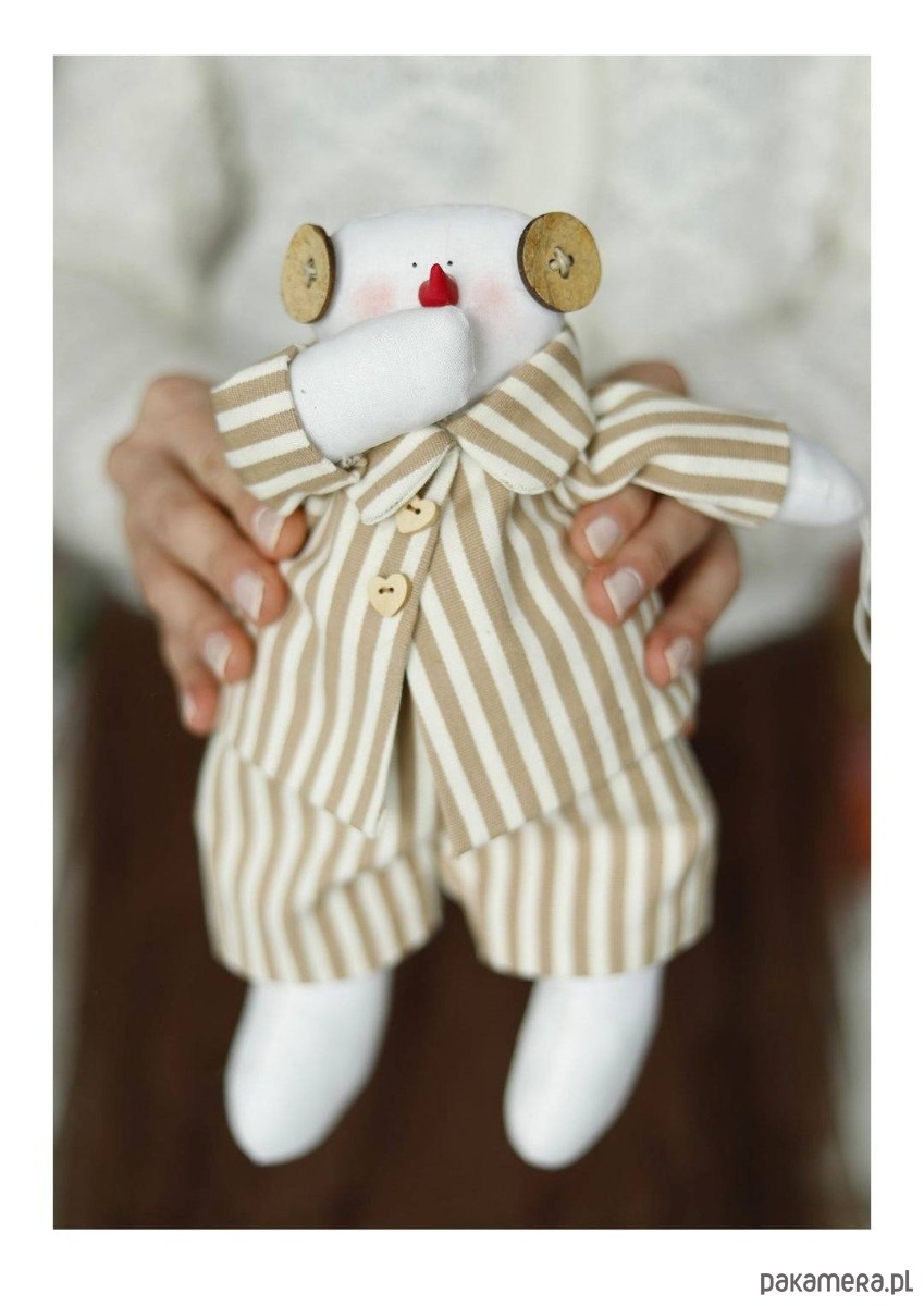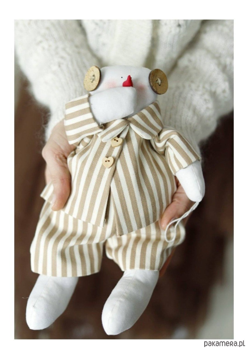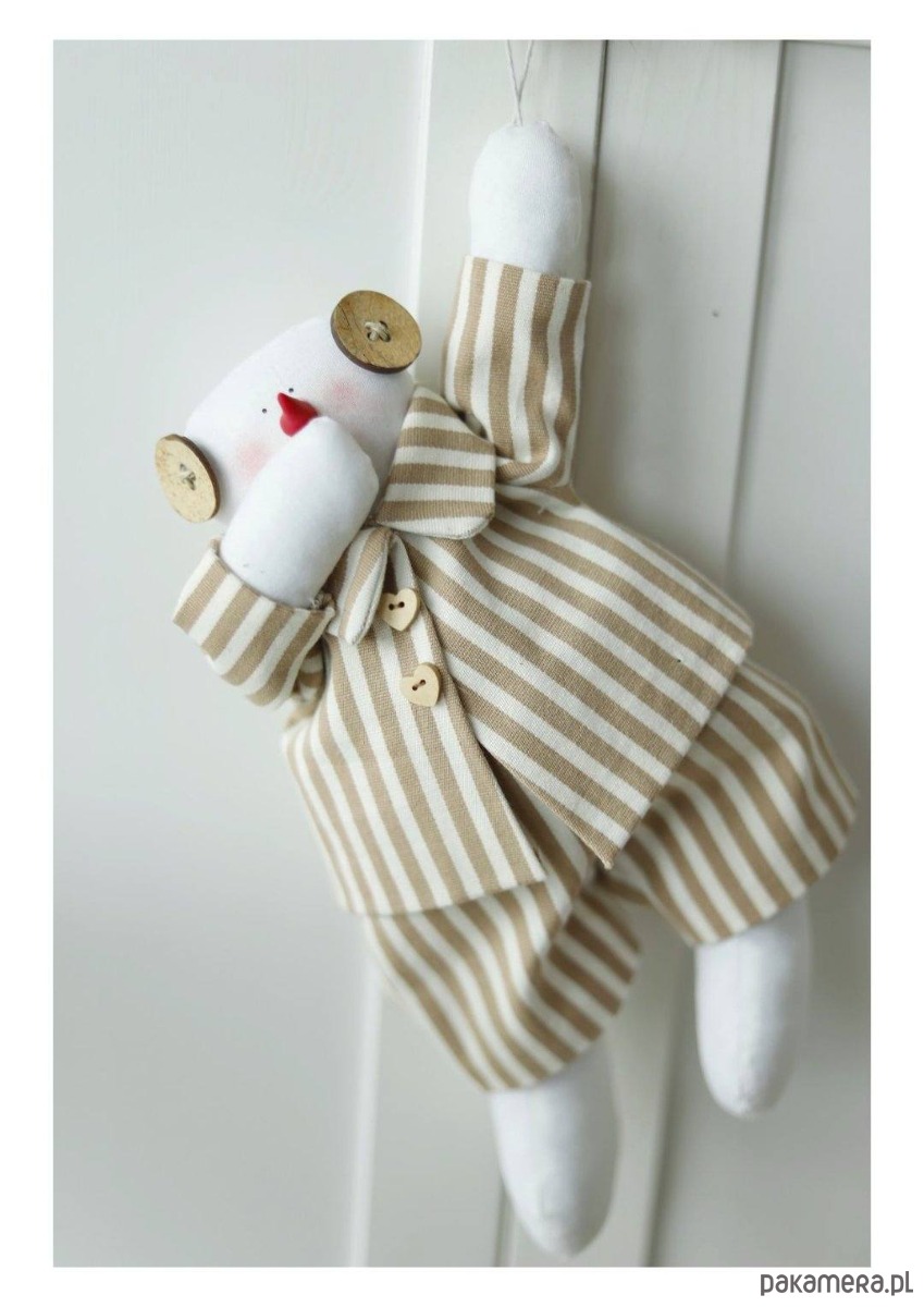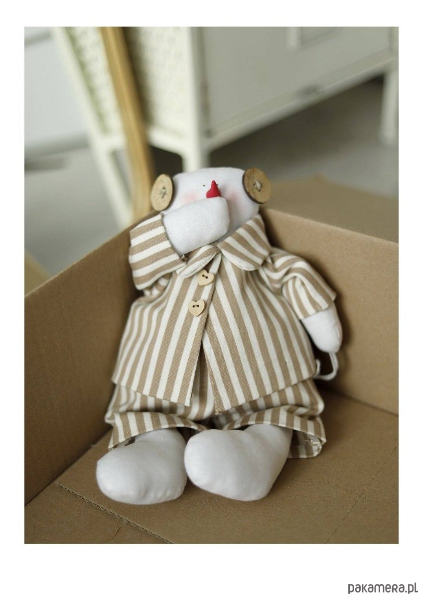Bałwan uszyty z bawełny,wypełniony antyalergiczną owatą.