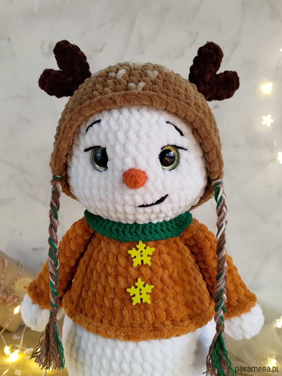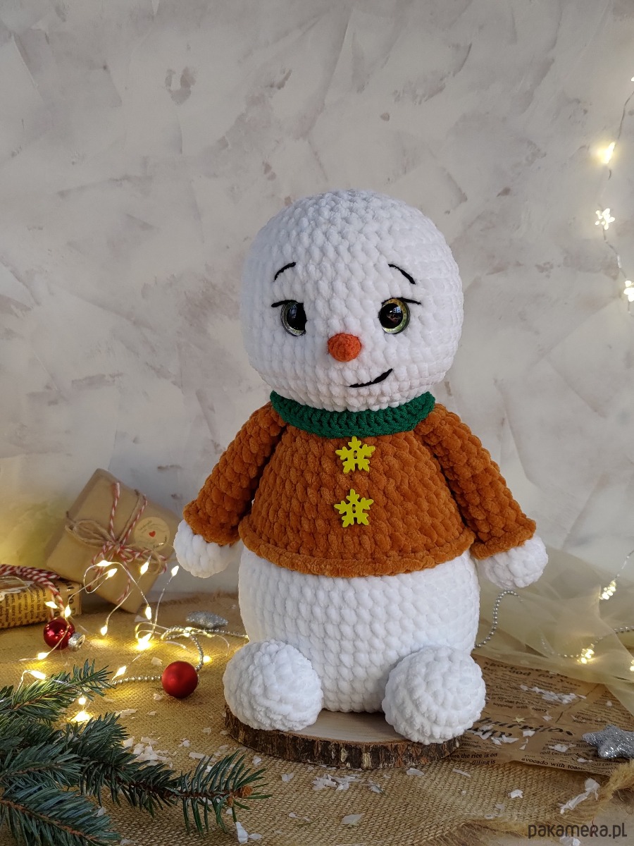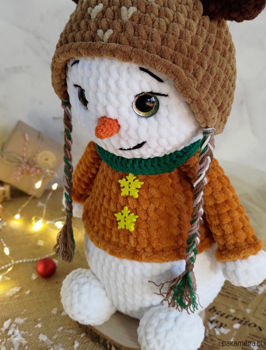 • Bałwanek wykonany z miękkiej pluszowej włóczki i jest bardzo przyjemny i miękki w dotyku.