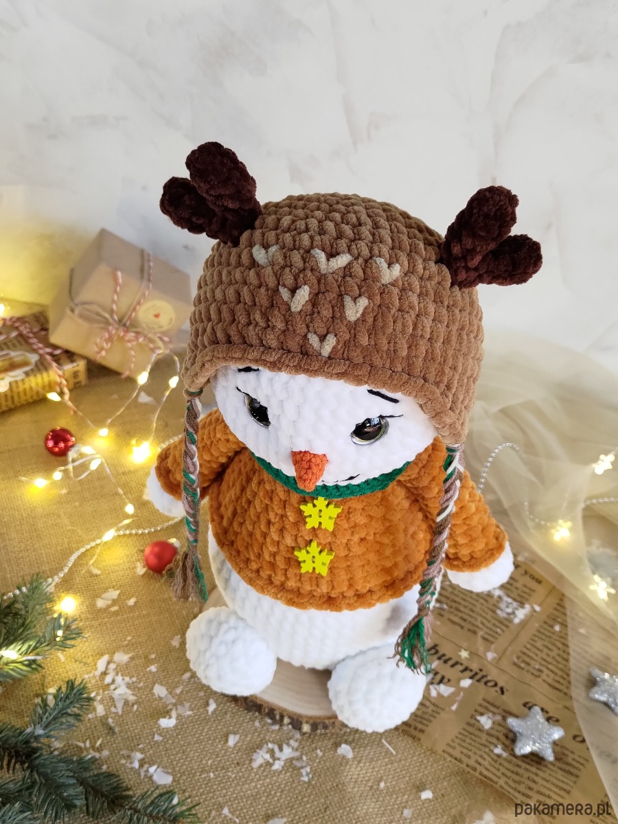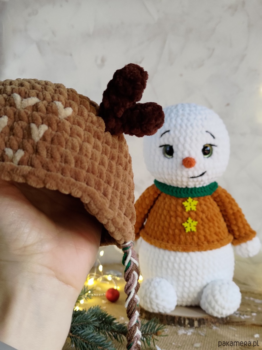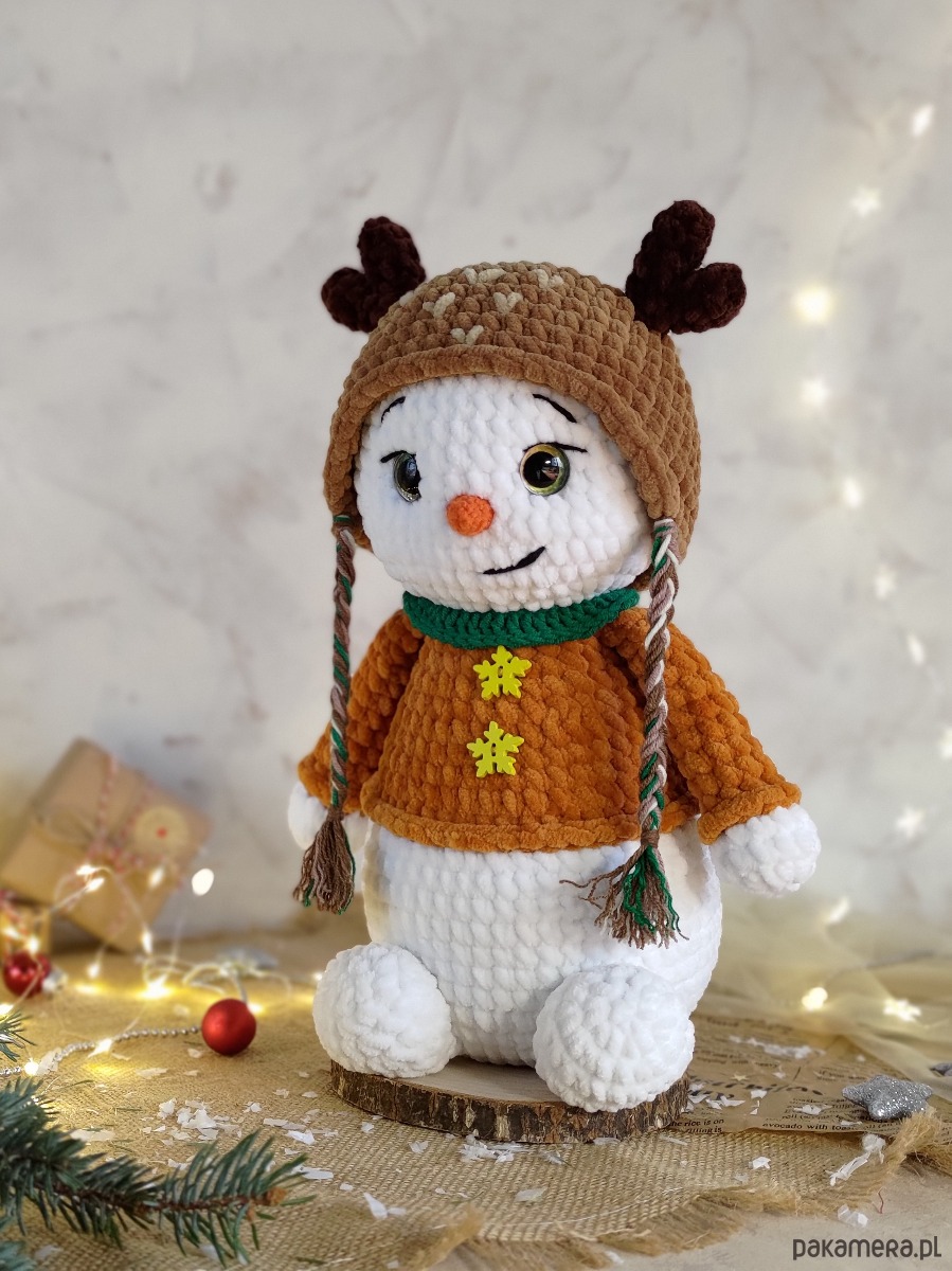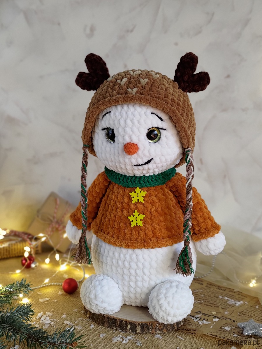 • Bałwanek wykonany z miękkiej pluszowej włóczki i jest bardzo przyjemny i miękki w dotyku.