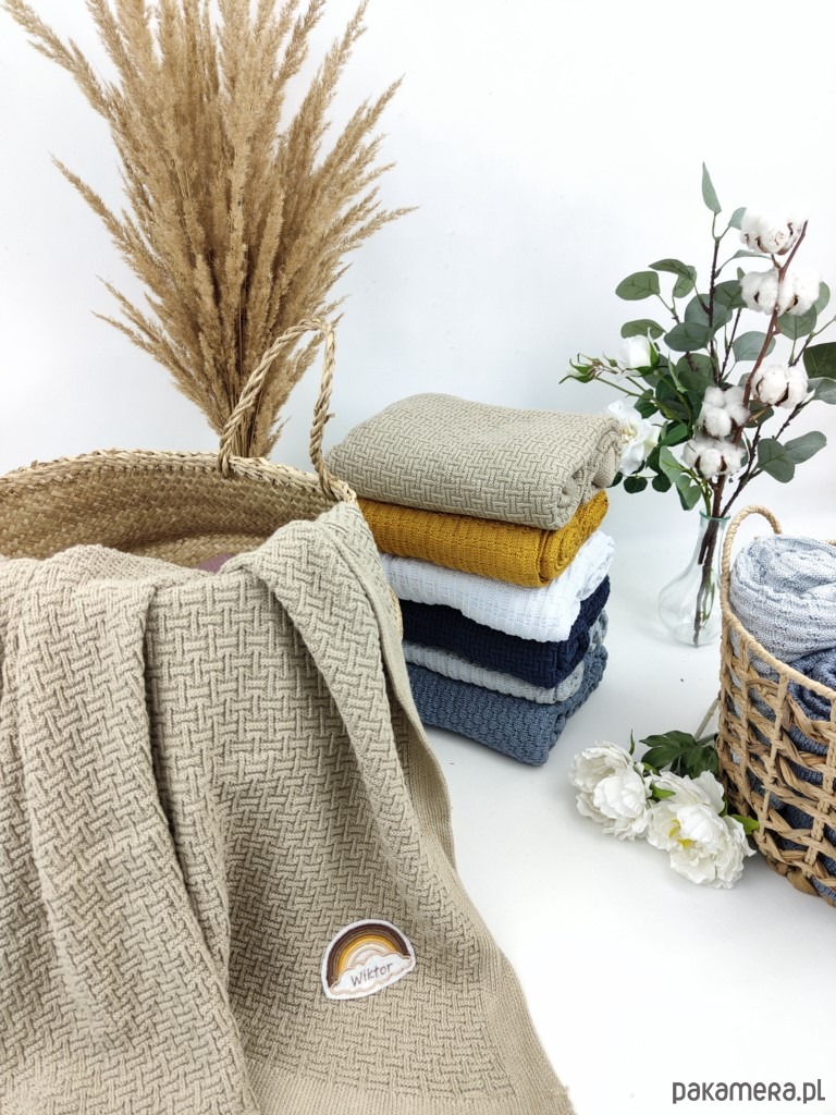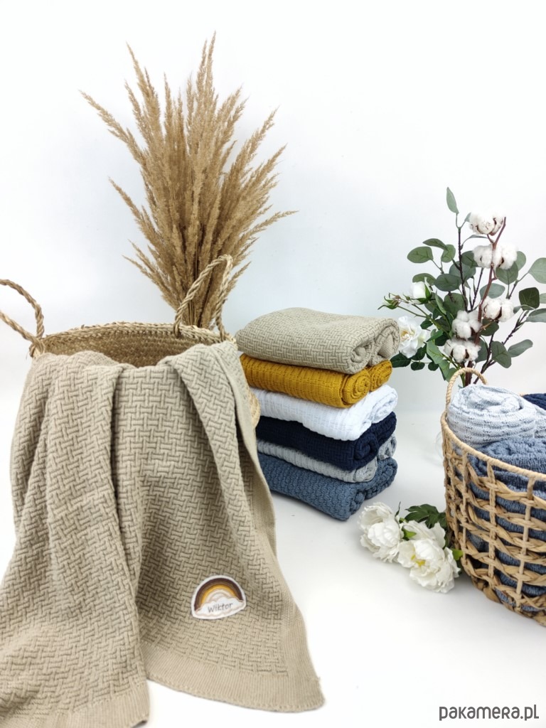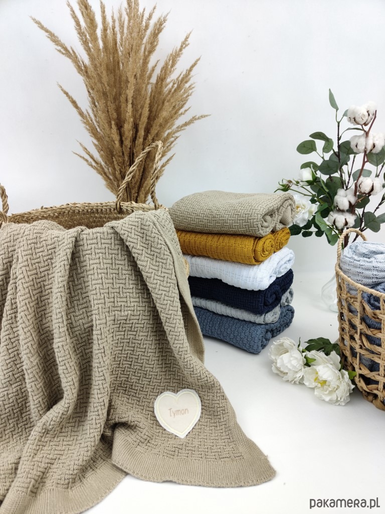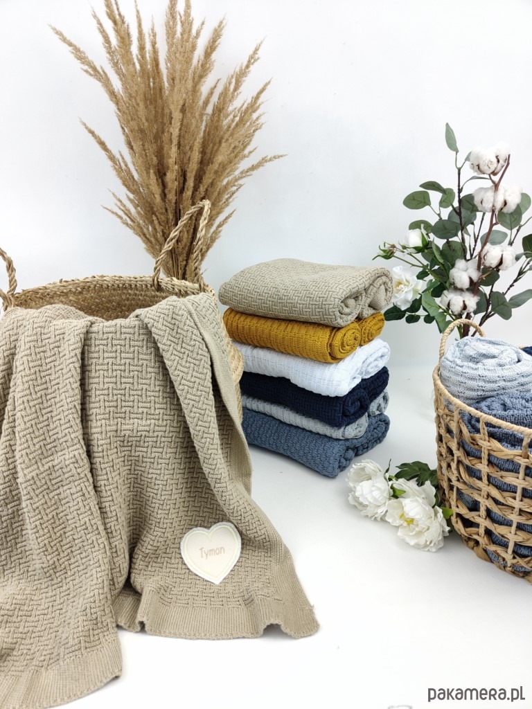Bambusowy personalizowany kocyk, beżowy kocyk bambusowy