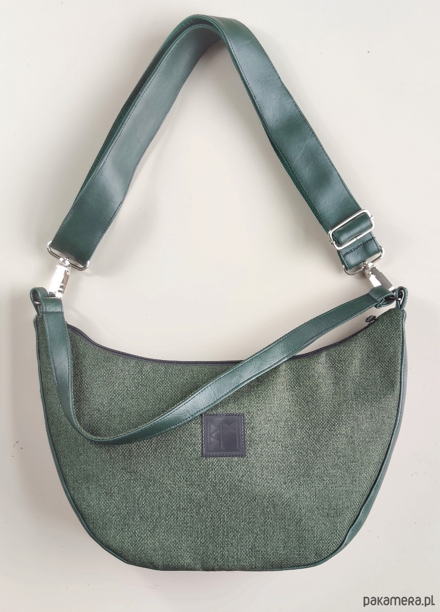 Torebka wykonana z tkaniny tapicerskiej i imitacji skóry, zamykana na zamek. Do noszenia na ramię lub na krzyż. Wewnątrz kieszonka na zamek. Torebka posiada odpinany dlugi pasek.