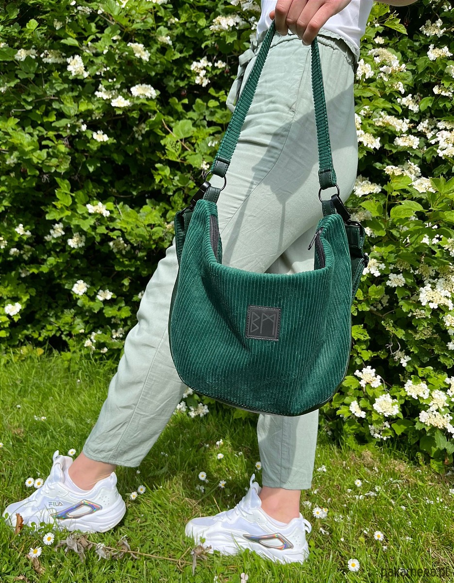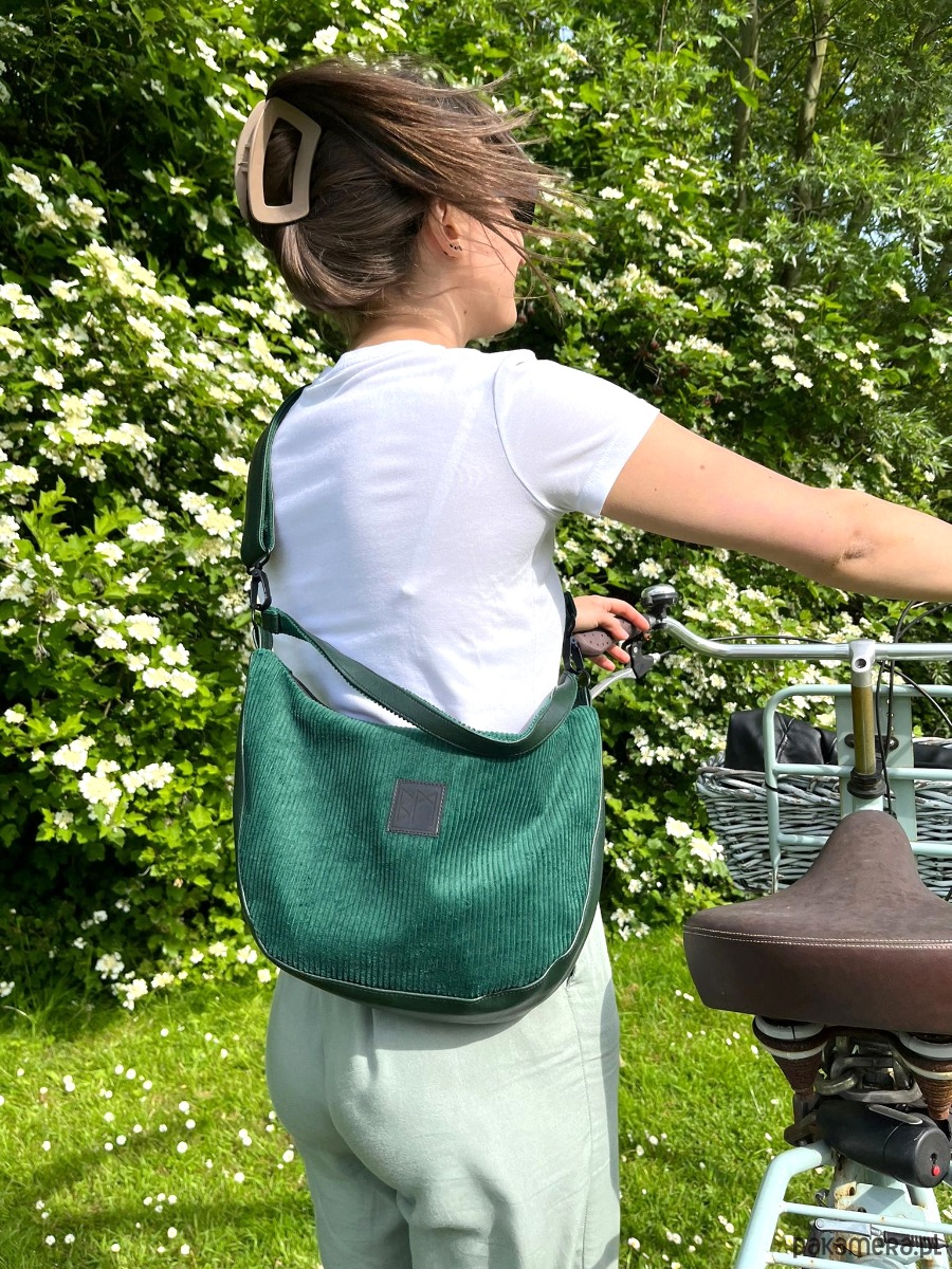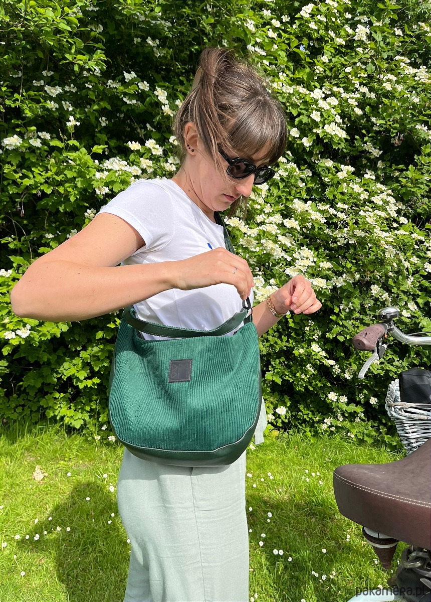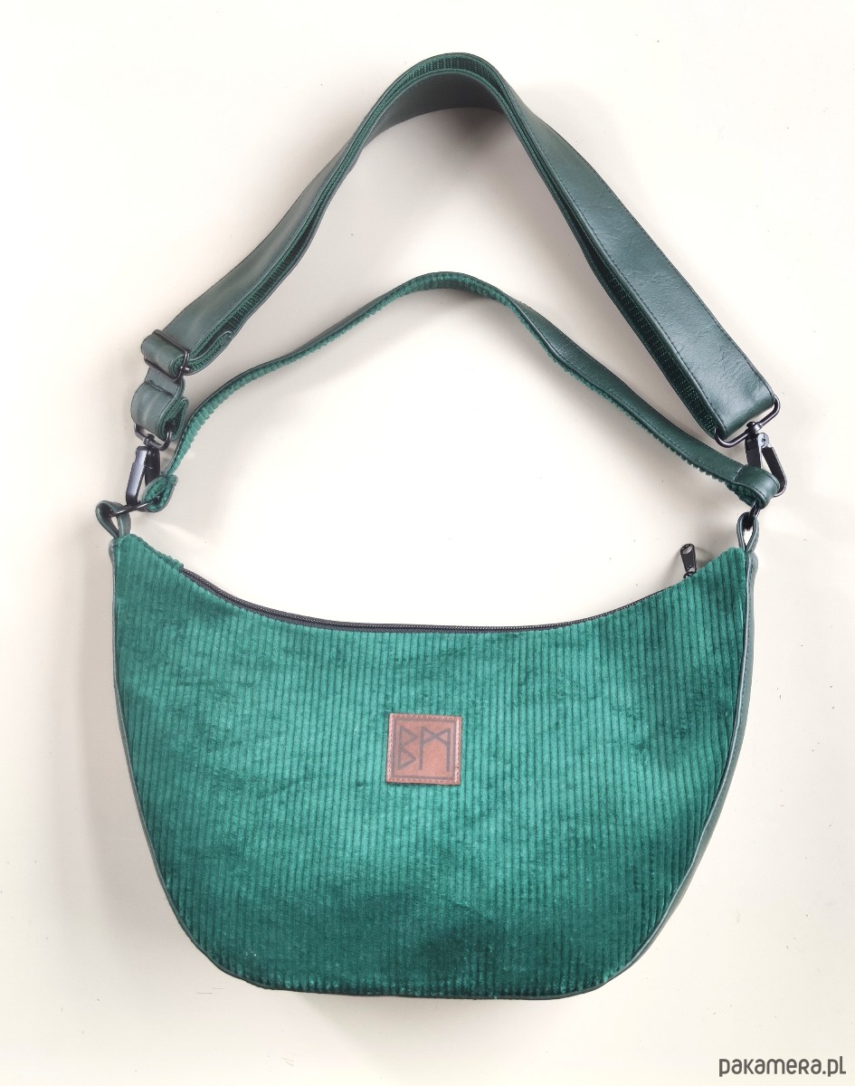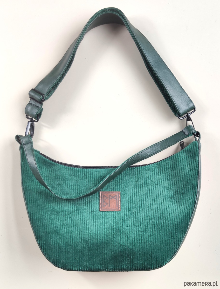 Torebka wykonana ze sztruksu i eko skóry, zamykana na zamek. Do noszenia na ramię lub na krzyż. Wewnątrz kieszonka na zamek. Torebka posiada odpinany dlugi pasek.