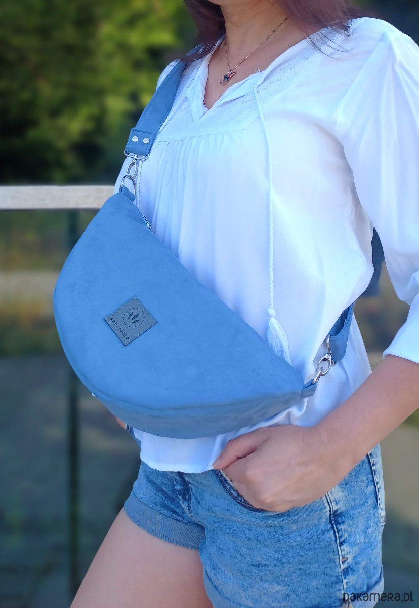 Torebka nerka wykonana z grubego zamszu premium o wyglądzie naturalnej zamszowej skóry.