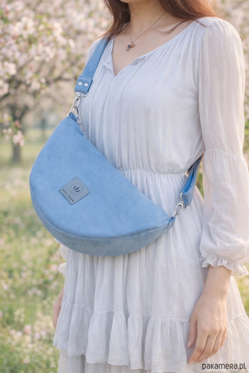 Torebka nerka wykonana z grubego zamszu premium o wyglądzie naturalnej zamszowej skóry.