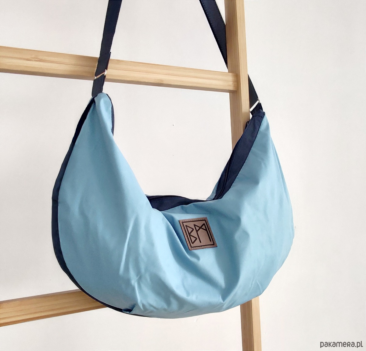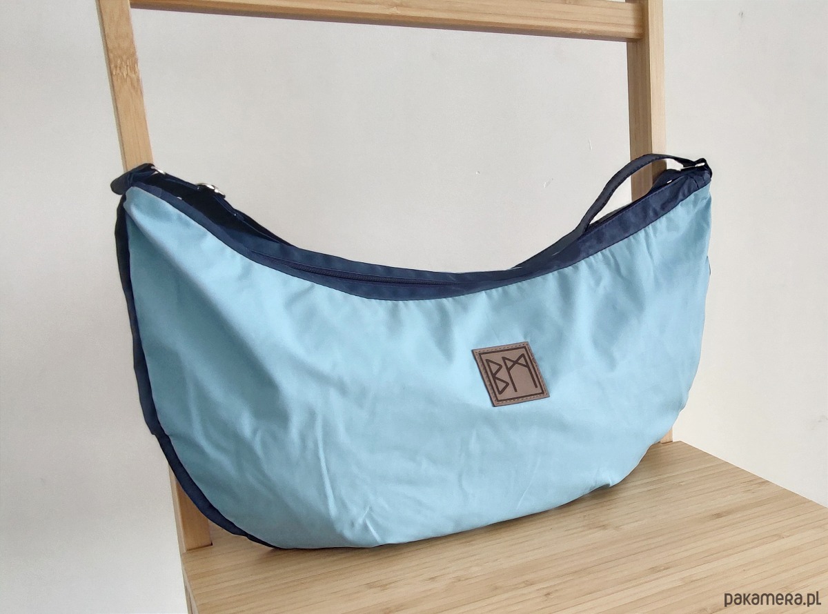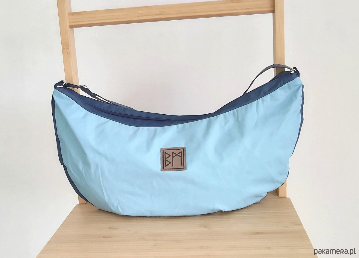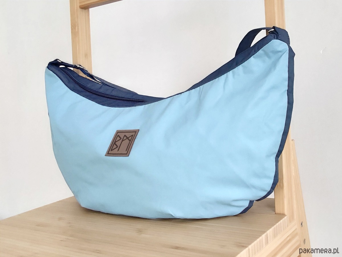 Torebka banan do noszenia na ramię i na krzyż, wykonana z wodoodpornego materiału, zamykana na suwak. Wewnątrz podszewka z zamykaną na suwak kieszonką.