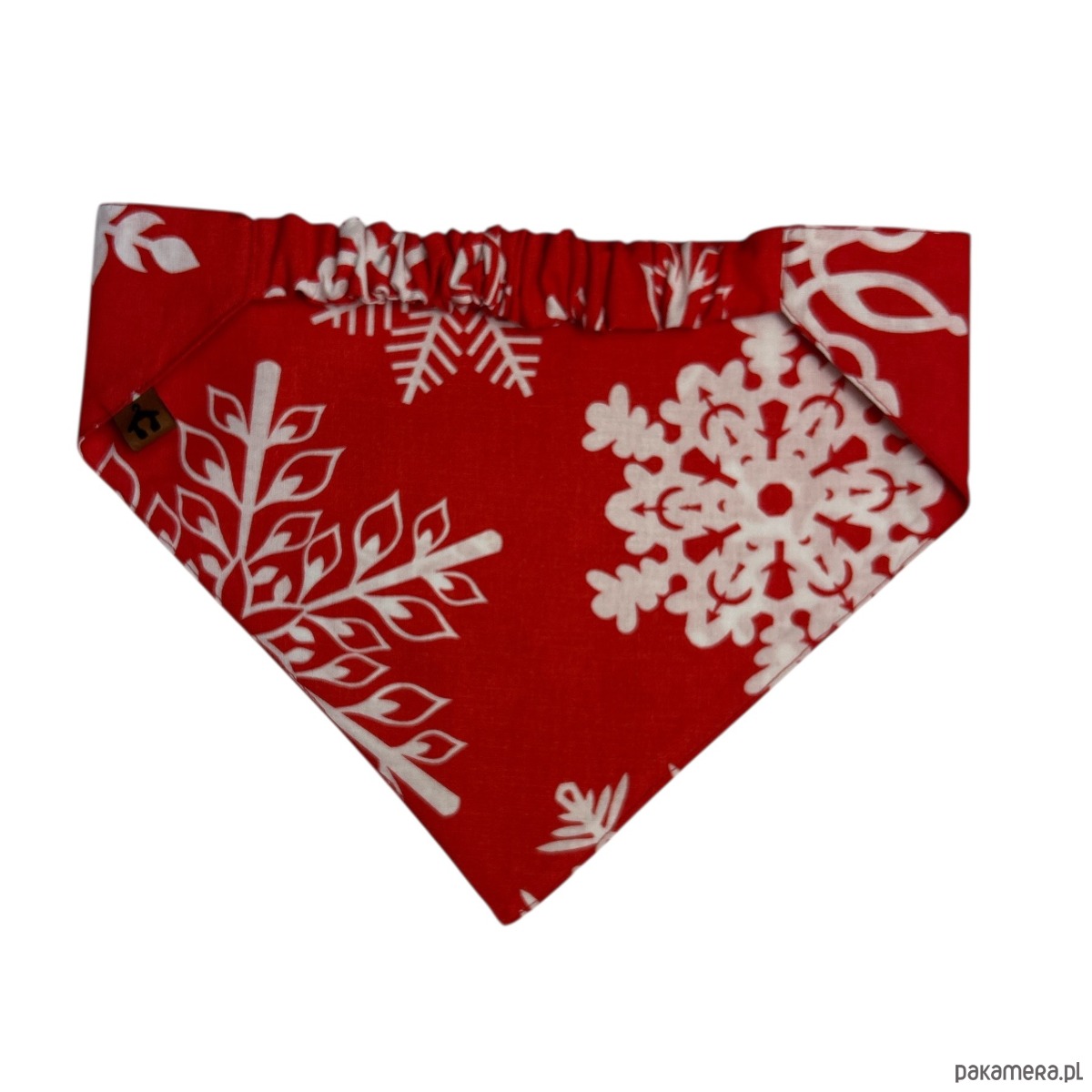 Bandana dla psa na gumce – czerwona w śnieżynki