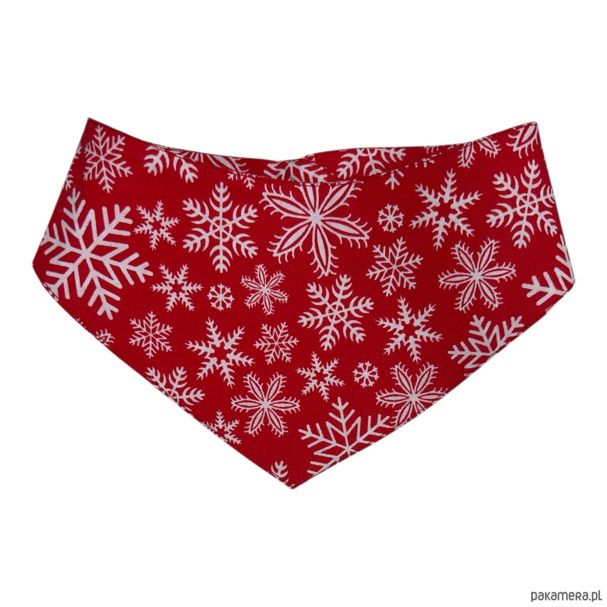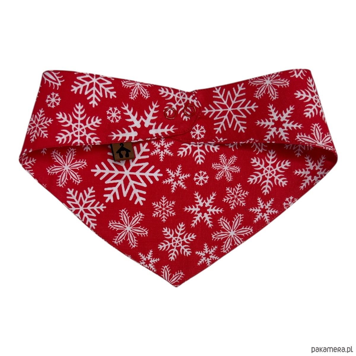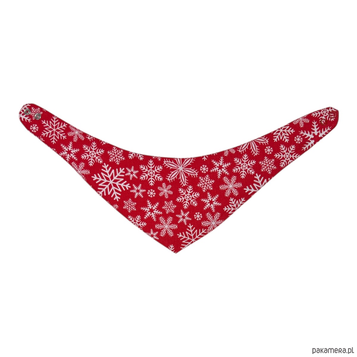 Stylowa bandana w bożonarodzeniowy wzór, idealna na zimowe spacery i rodzinne zdjęcia. Zapięcie na napy ułatwia szybkie zakładanie i dopasowanie bez wiązania, a bawełniana tkanina jest miękka i komfortowa dla psa.