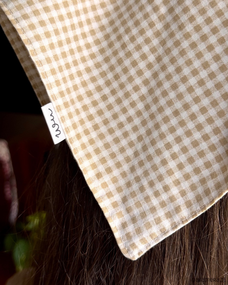 Lekka, przewiewna, trójkątna bandana z doszytymi troczkami do zawiązywania, uszyta z tkanin z drugiej ręki. Każda sztuka to unikalny egzemplarz – efekt świadomego wyboru materiałów i ręcznego wykonania. Idealna jako ochrona przed słońcem, stylowy dodatek do fryzury lub akcent codziennej stylizacji.