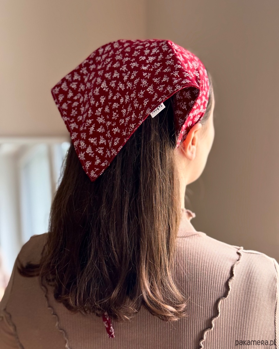 Lekka, przewiewna, trójkątna bandana z doszytymi troczkami do zawiązywania, uszyta z tkanin z drugiej ręki. Każda sztuka to unikalny egzemplarz – efekt świadomego wyboru materiałów i ręcznego wykonania. Idealna jako ochrona przed słońcem, stylowy dodatek do fryzury lub akcent codziennej stylizacji.