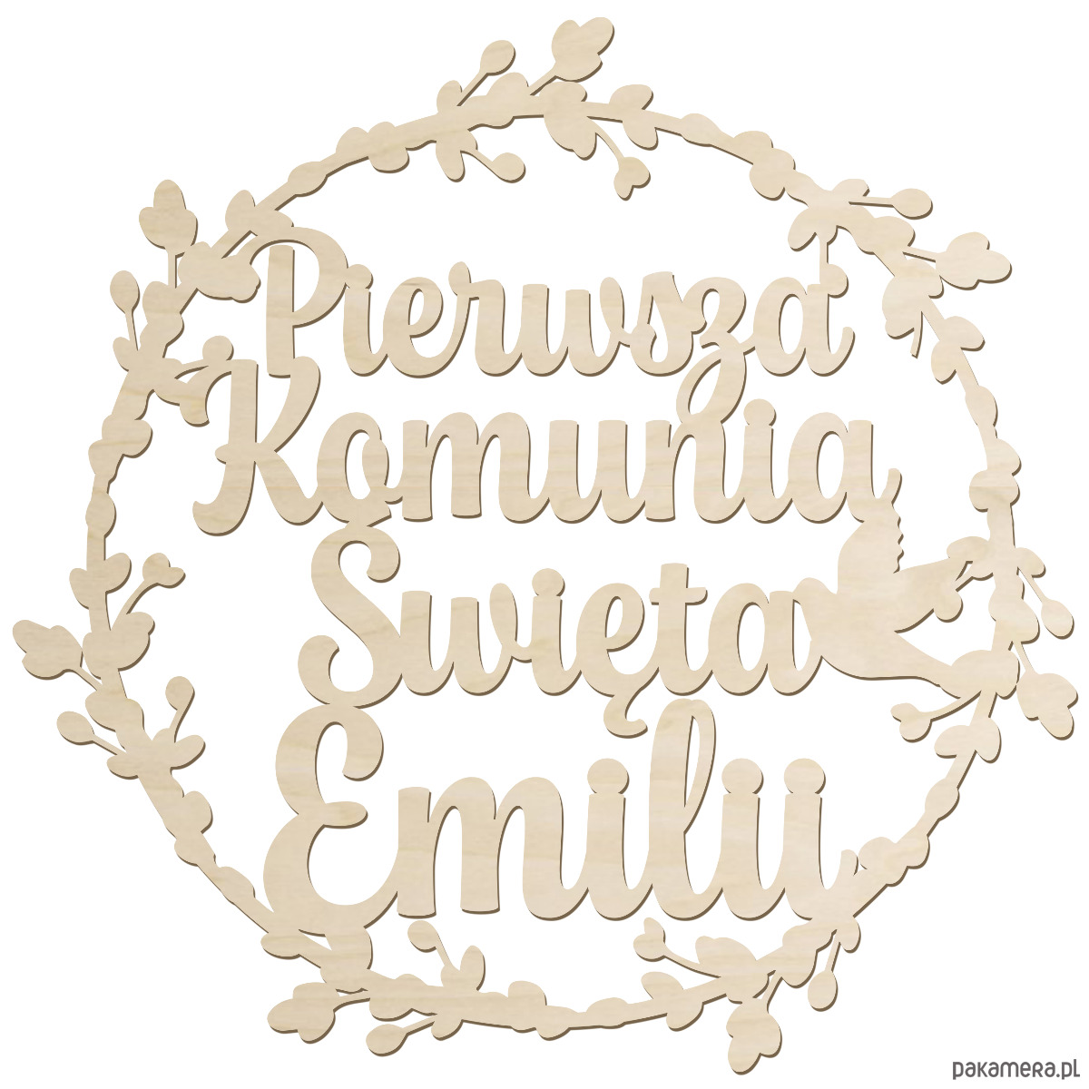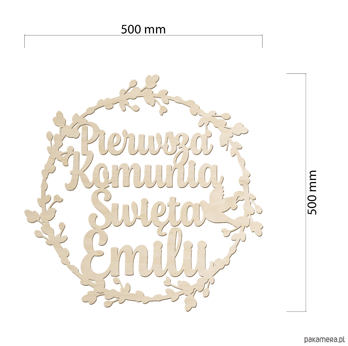Baner Girlanda Obręcz Drewniane koło dekoracje komunia z IMIENIEM 50cm