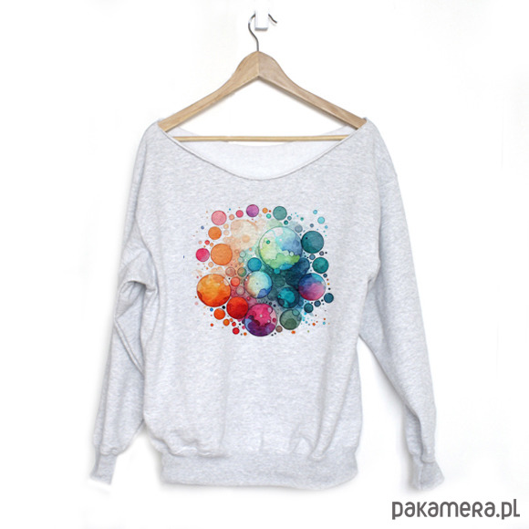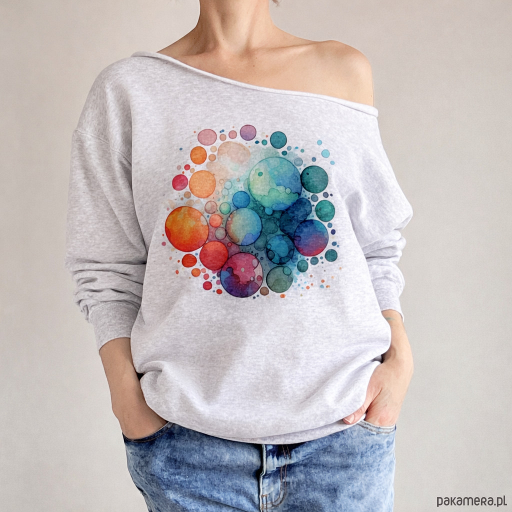 Kolorowe przenikające się kuleczki. Akwarelkowy nadruk, urocze odcienie.
