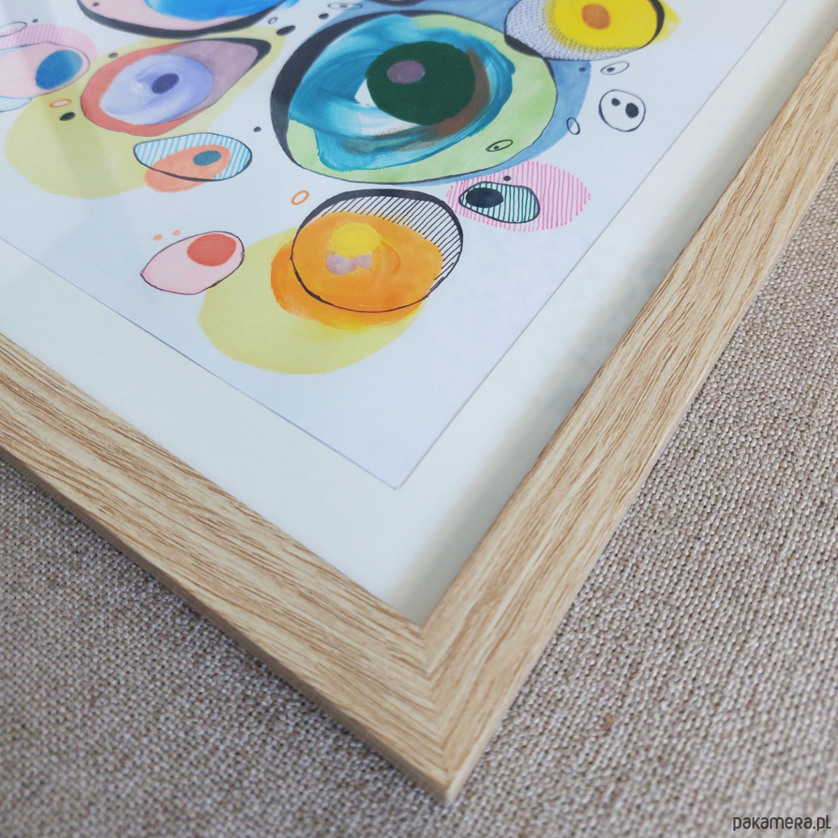 Oprawiona jest w ramę w kolorze jasnego drewna i białe wąskie passepartout - rozjaśni każde wnętrze i dopełni każdy dom :)