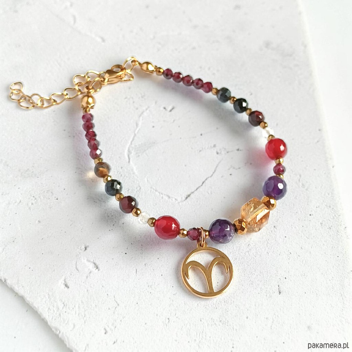 - Rodzaj kamienia: tygrysie oko, kryształ górski, karneol, granat, cytryn, ametyst