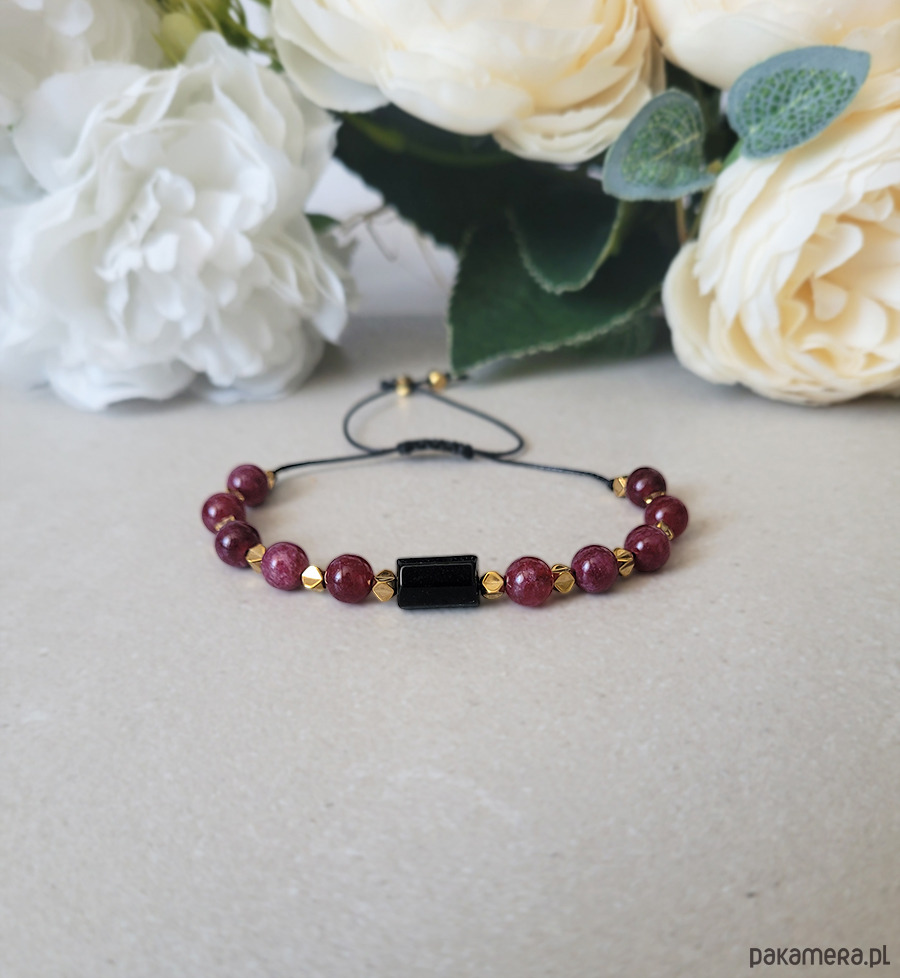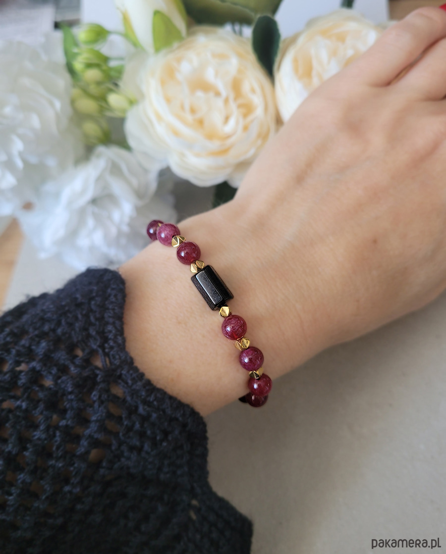 Bransoletka zrobiona z kamieni naturalnych: Turmalinu czarnego, Granatu oraz Hematytu przeznaczona szczególnie dla zodiakalnego Barana.