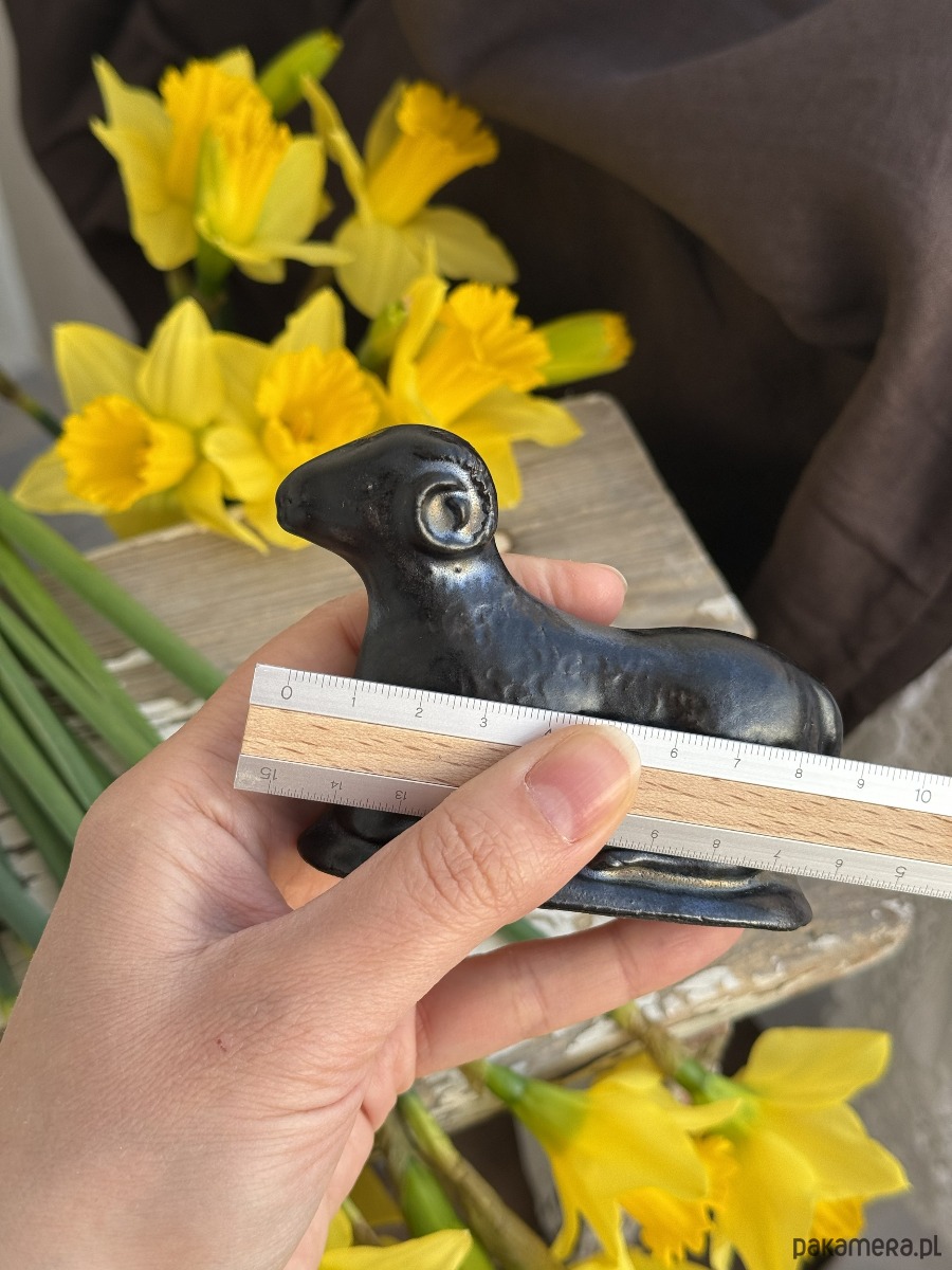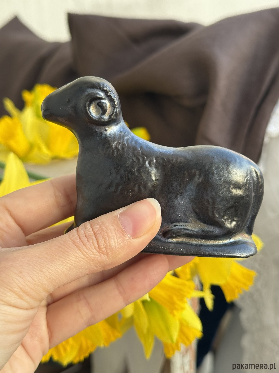 Kupując baranka z tej aukcji, kupujesz dokładnie tego, który jest na zdjęciu — ten jest szkliwiony na złoto-czarny kolor — nierównomierny zamierzony efekt.