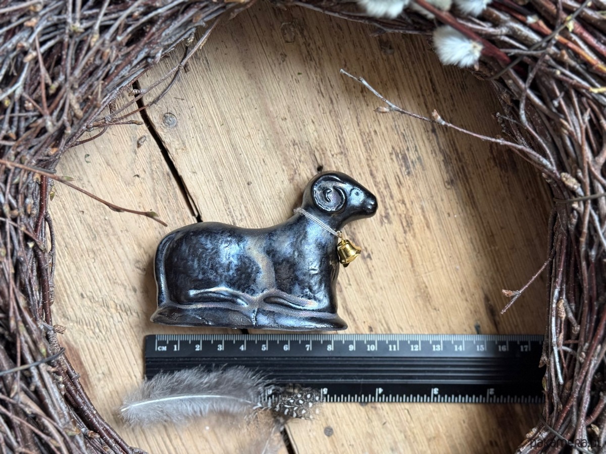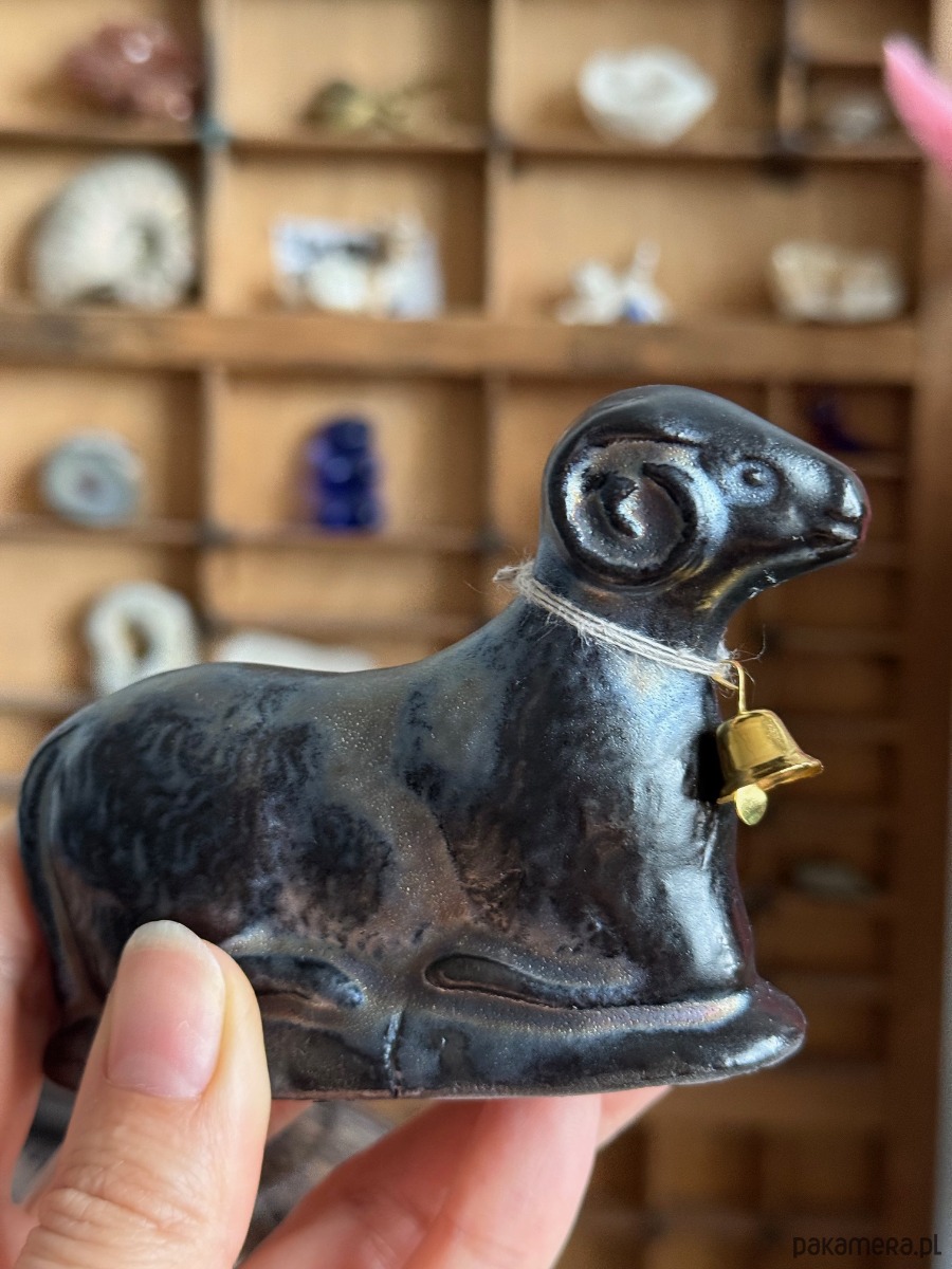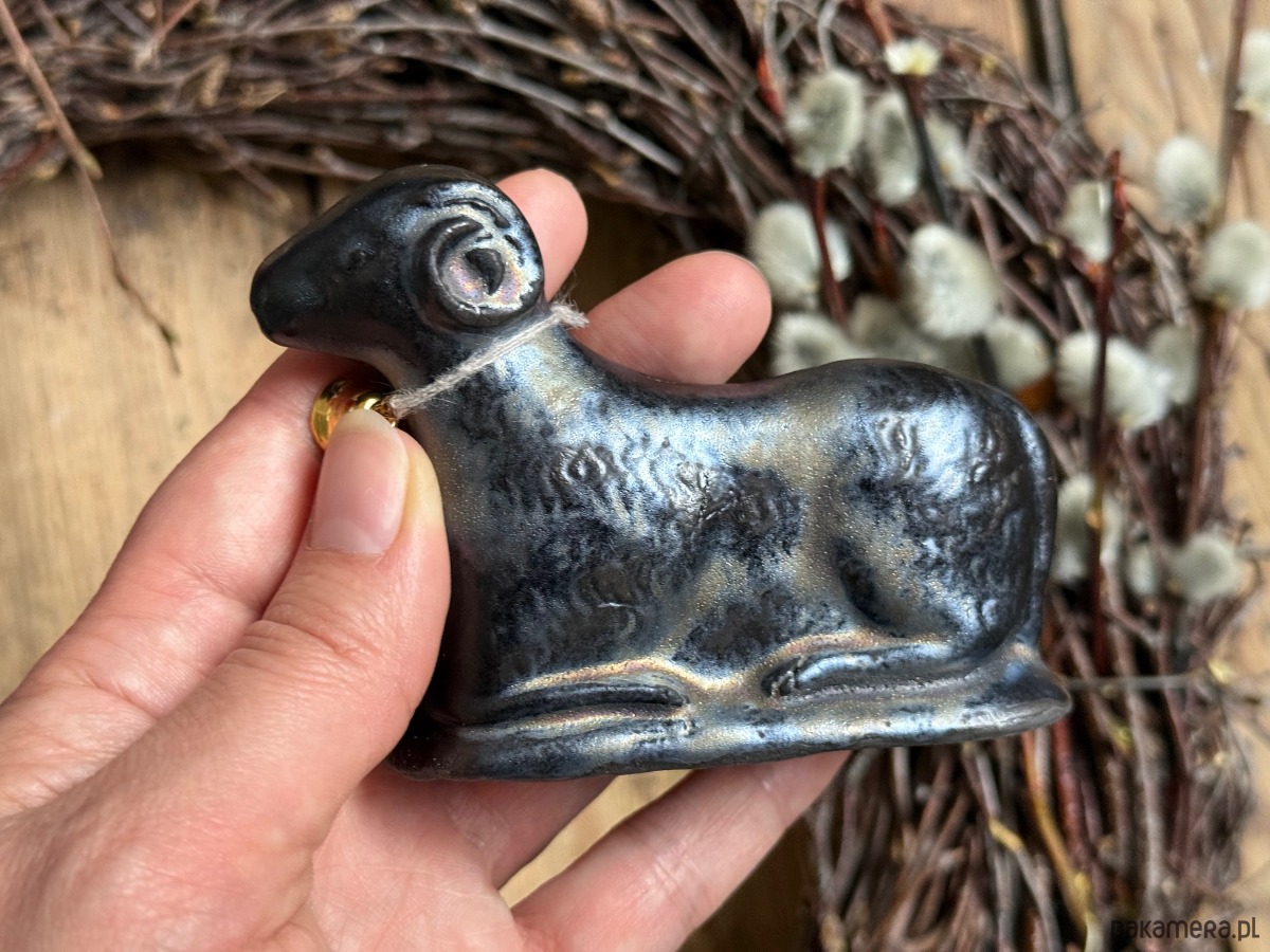 Kupując baranka z tej aukcji, kupujesz dokładnie tego, który jest na zdjęciu — ten jest szkliwiony na złoto-czarny kolor — nierównomierny zamierzony efekt.