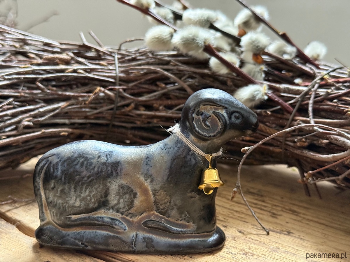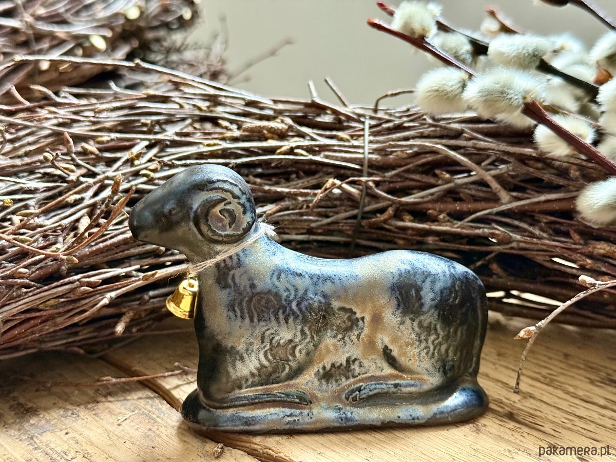 Ręcznie wylepiany i szkliwiony baranek powstał z chęci połączenia starego z nowym.