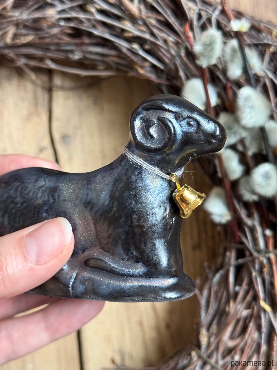 Ceramiczny baranek wielkanocny czarno-złoty błyszczący