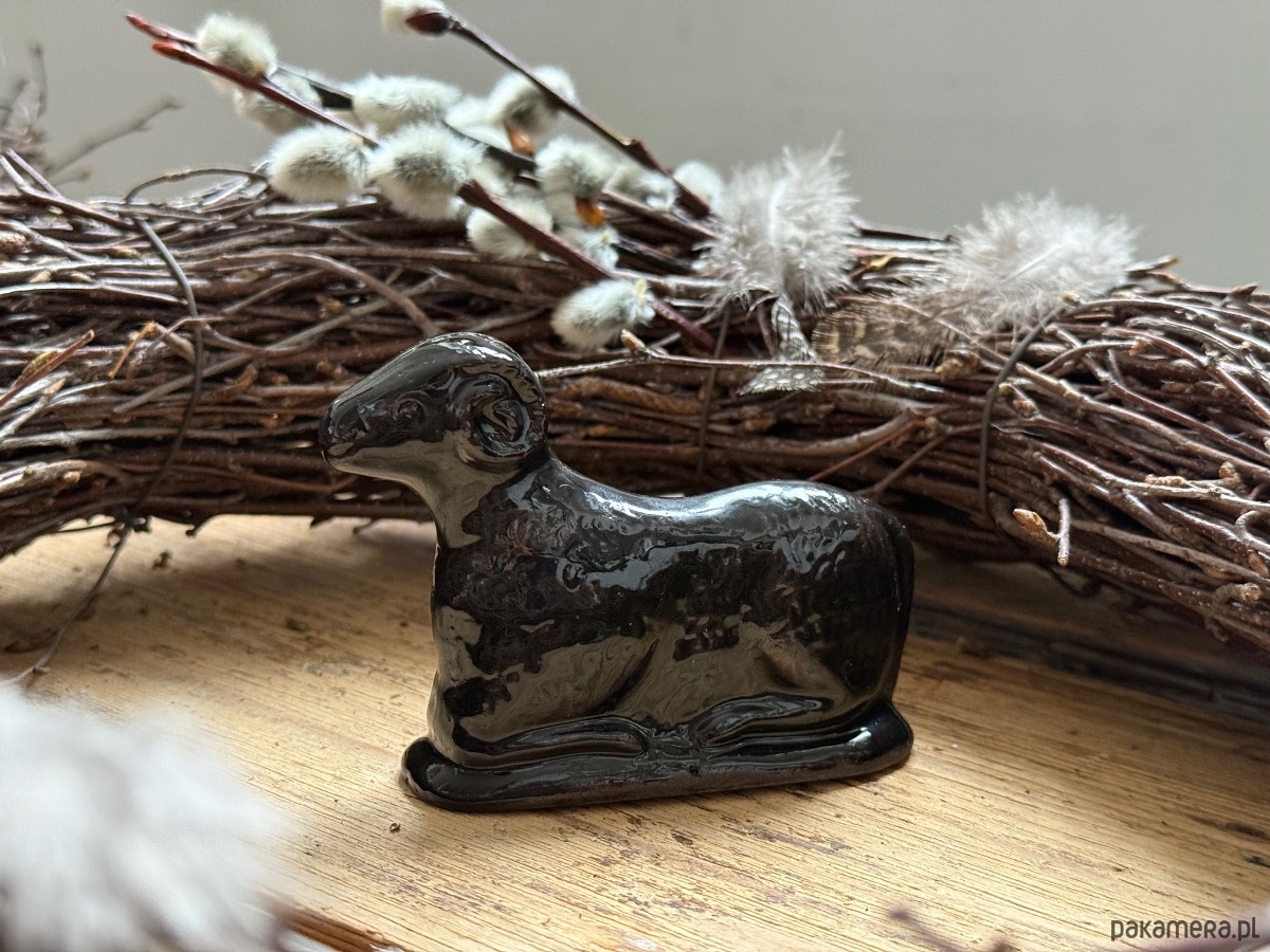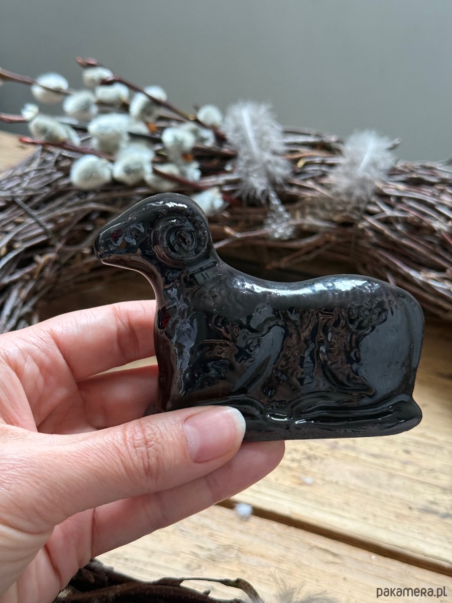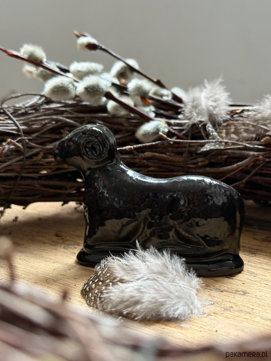 Ceramiczny baranek wielkanocny czarny błyszczący