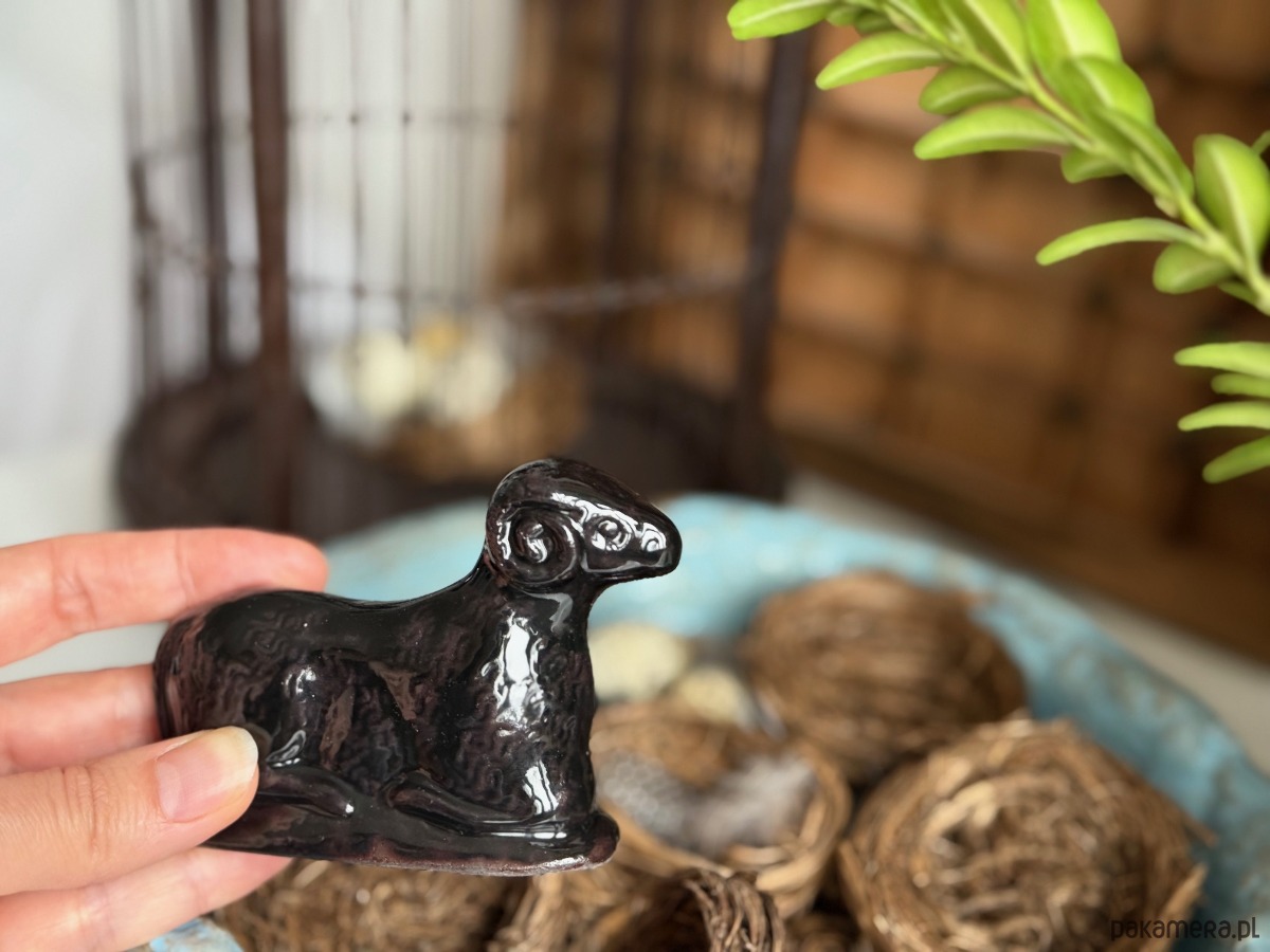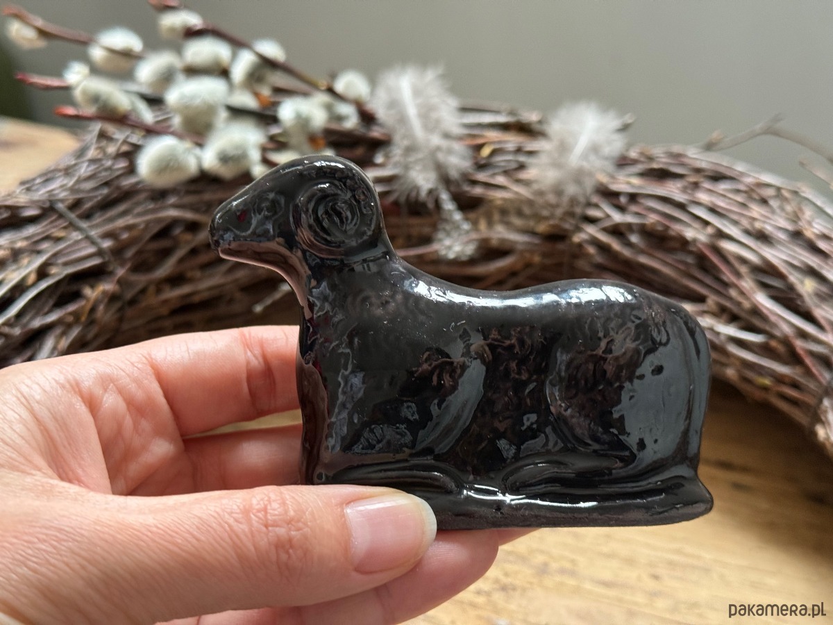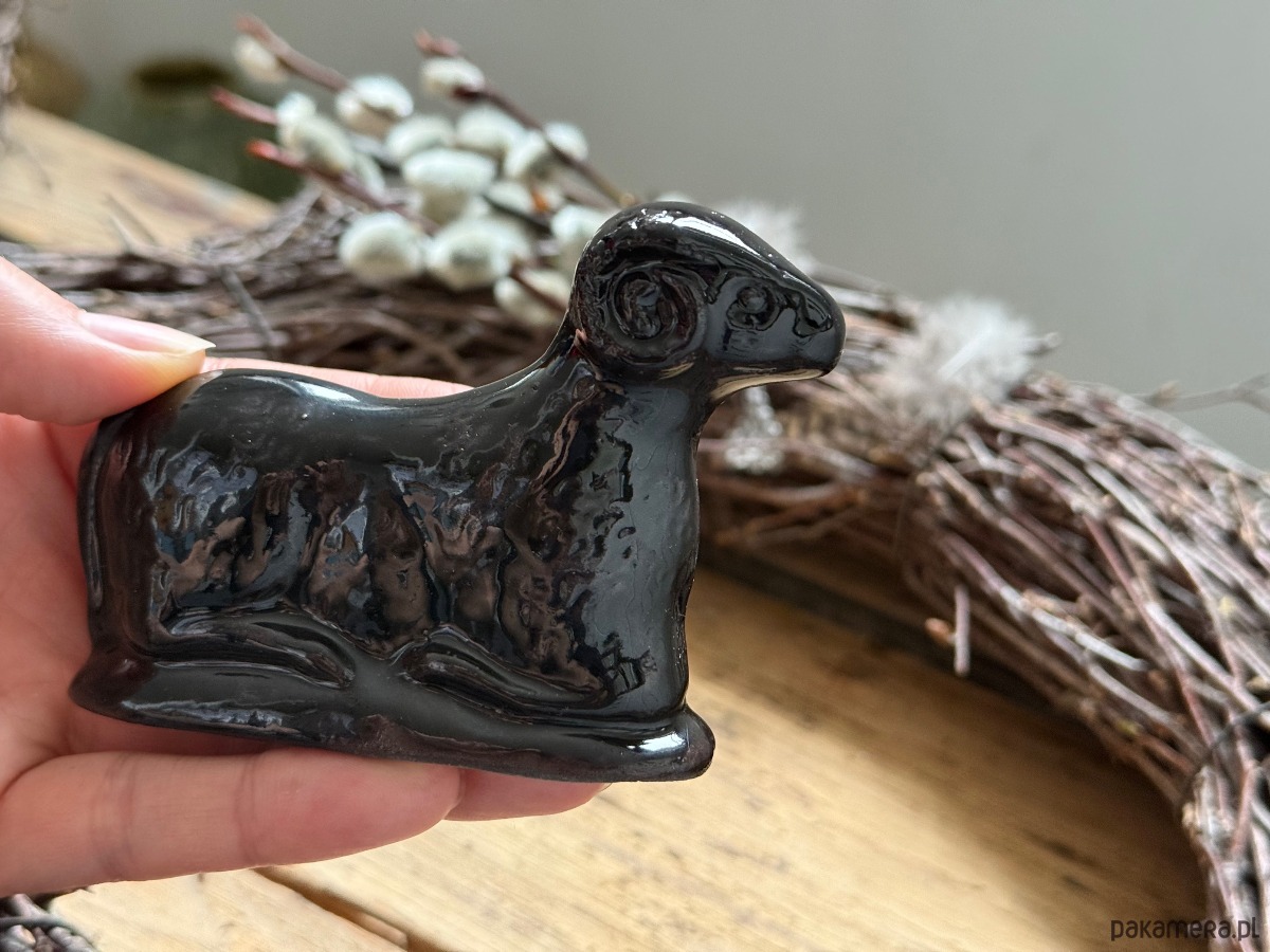 Ceramiczny baranek wielkanocny czarny błyszczący