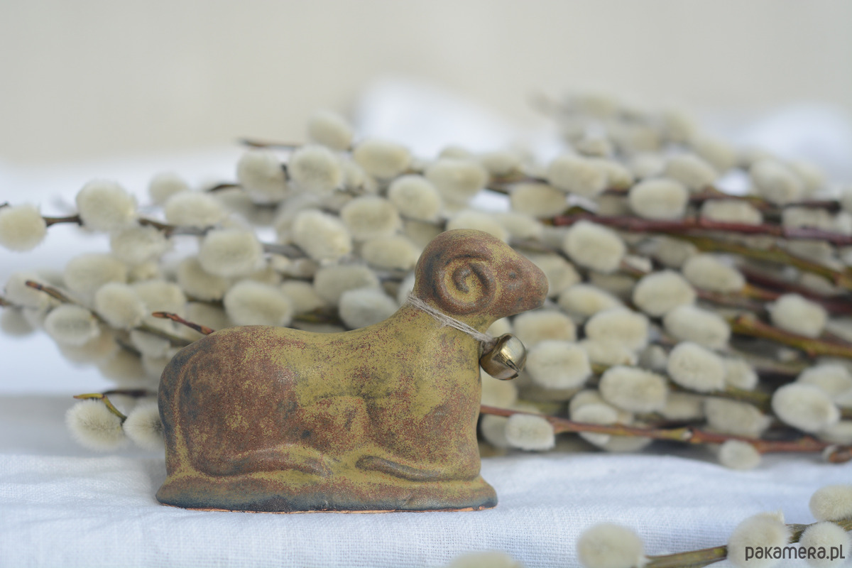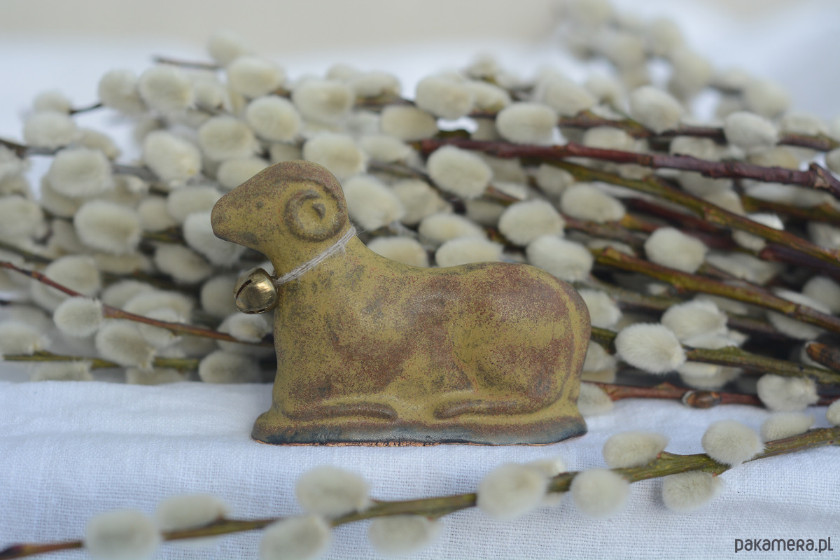 Ręcznie wylepiany i szkliwiony baranek powstał z chęci połączenia starego z nowym.
