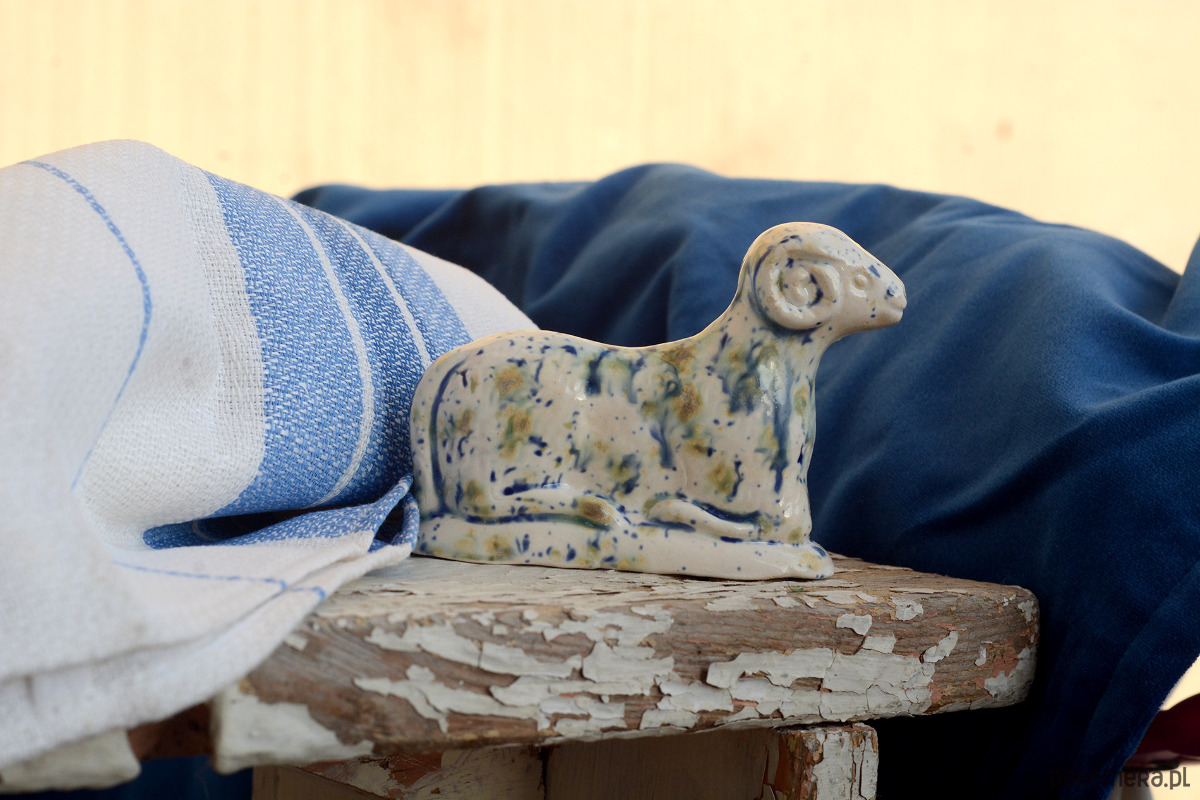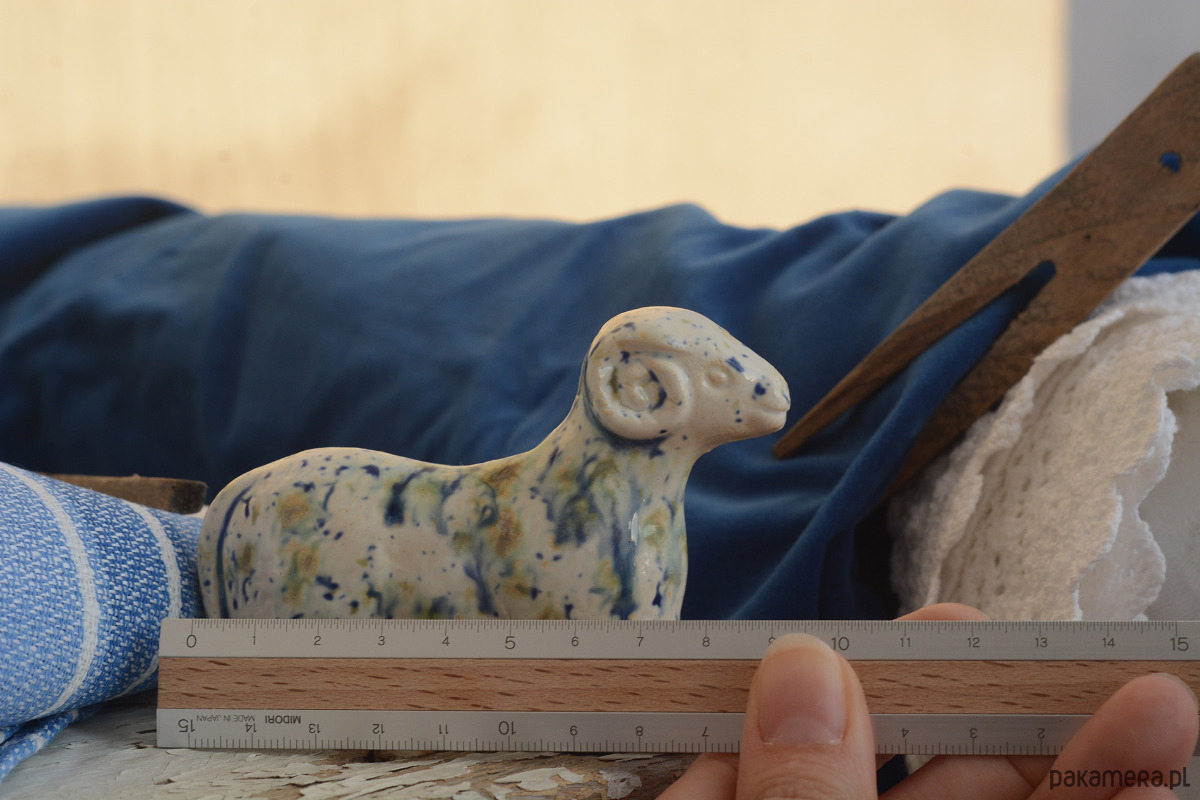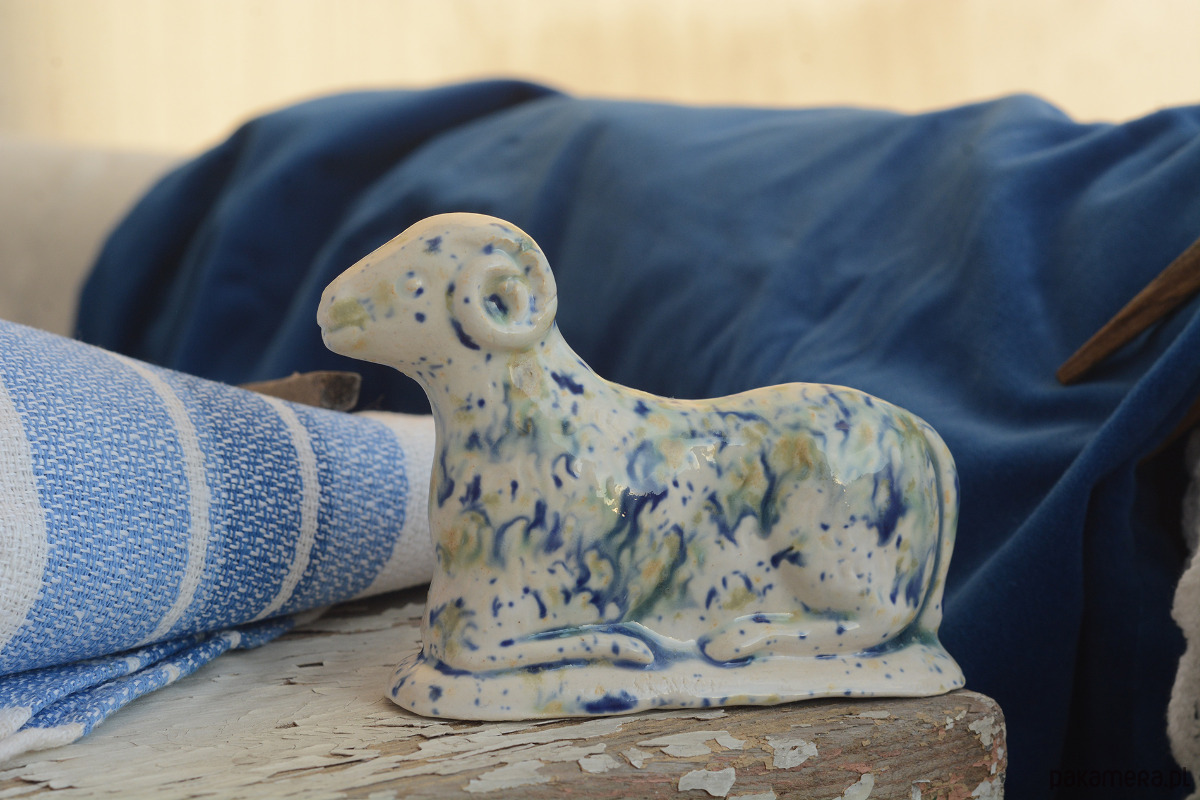 Ręcznie wylepiany i szkliwiony baranek powstał z chęci połączenia starego z nowym.
