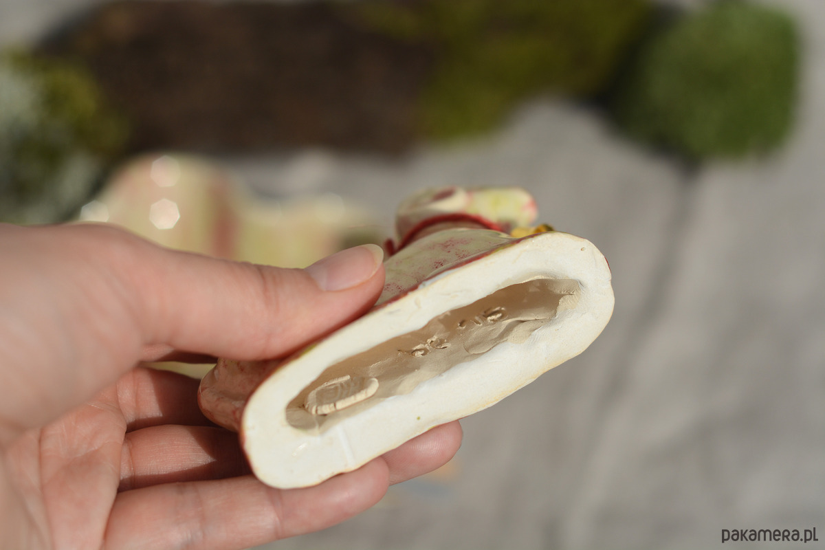 Każdy formowany jest ręcznie w foremce, potem szlifowany, wypalany na biskwit.