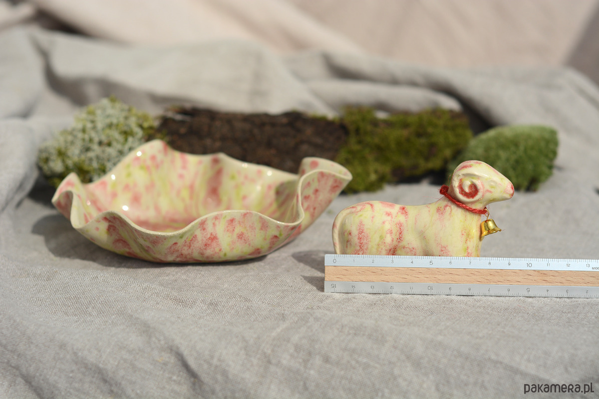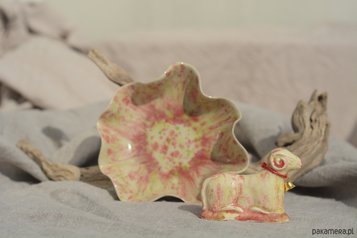 Ceramiczny baranek wielkanocny kolorowy kolekcja 'be' numer 15 w komplecie z miseczką