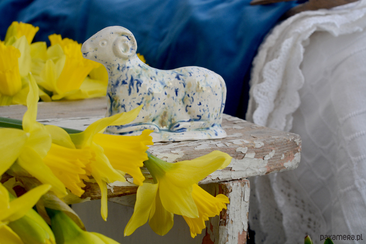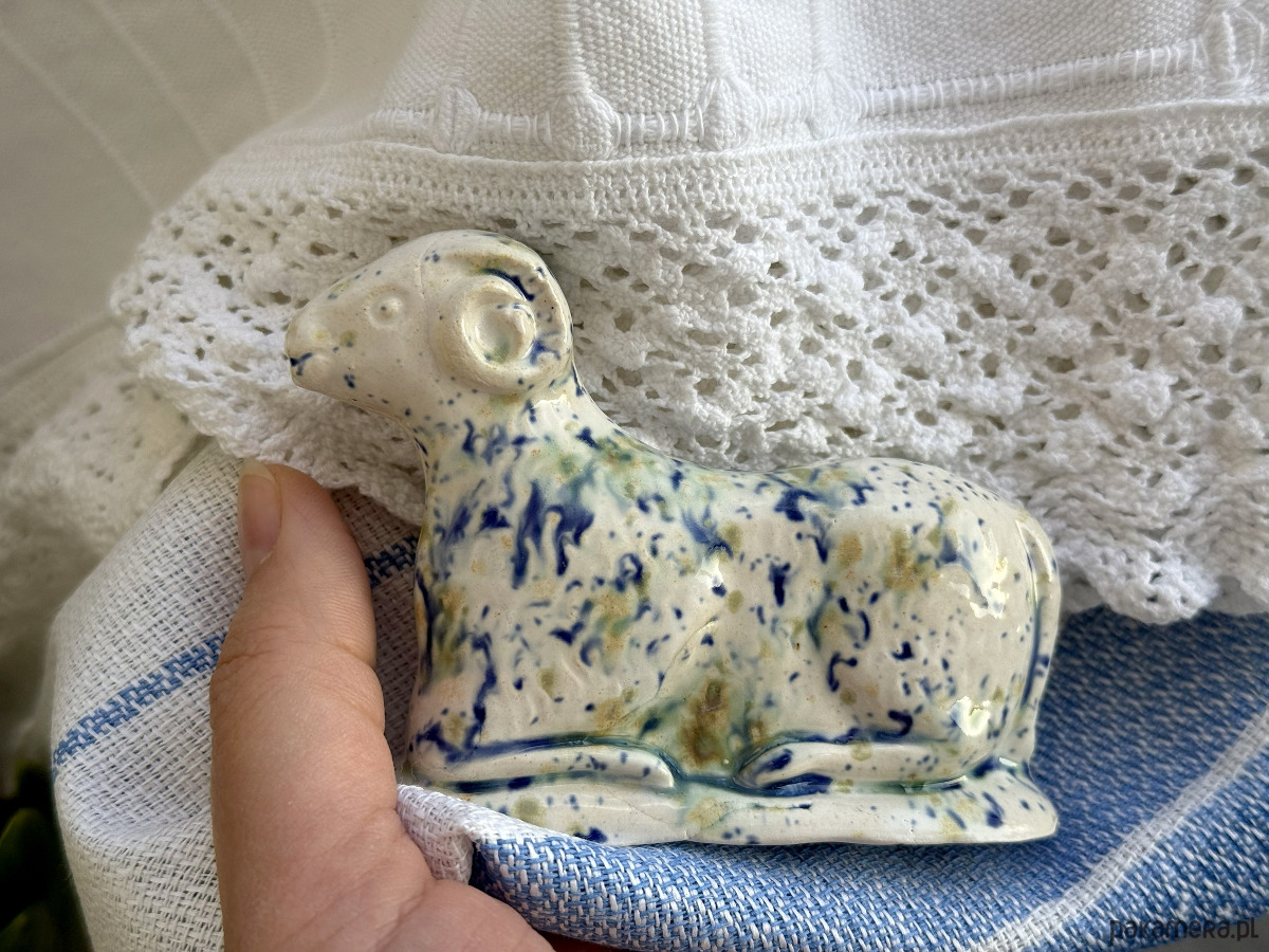 Ręcznie wylepiany i szkliwiony baranek powstał z chęci połączenia starego z nowym.