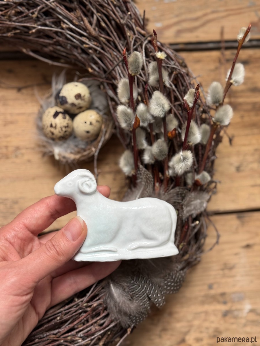 Ceramiczny baranek wielkanocny biały