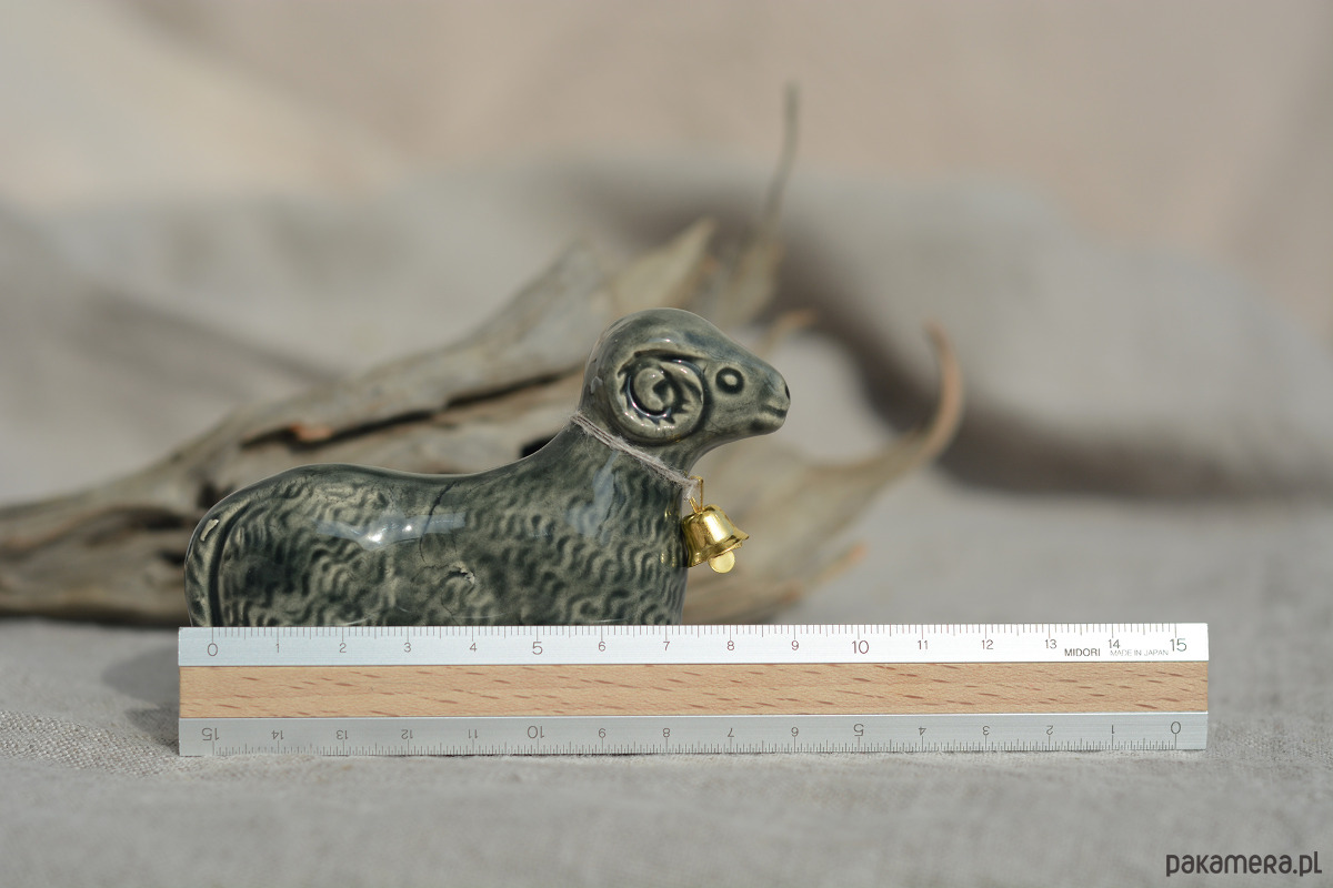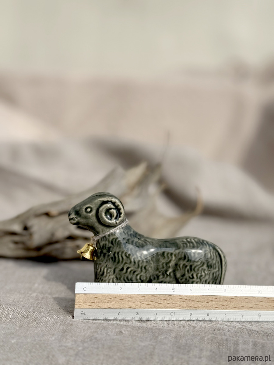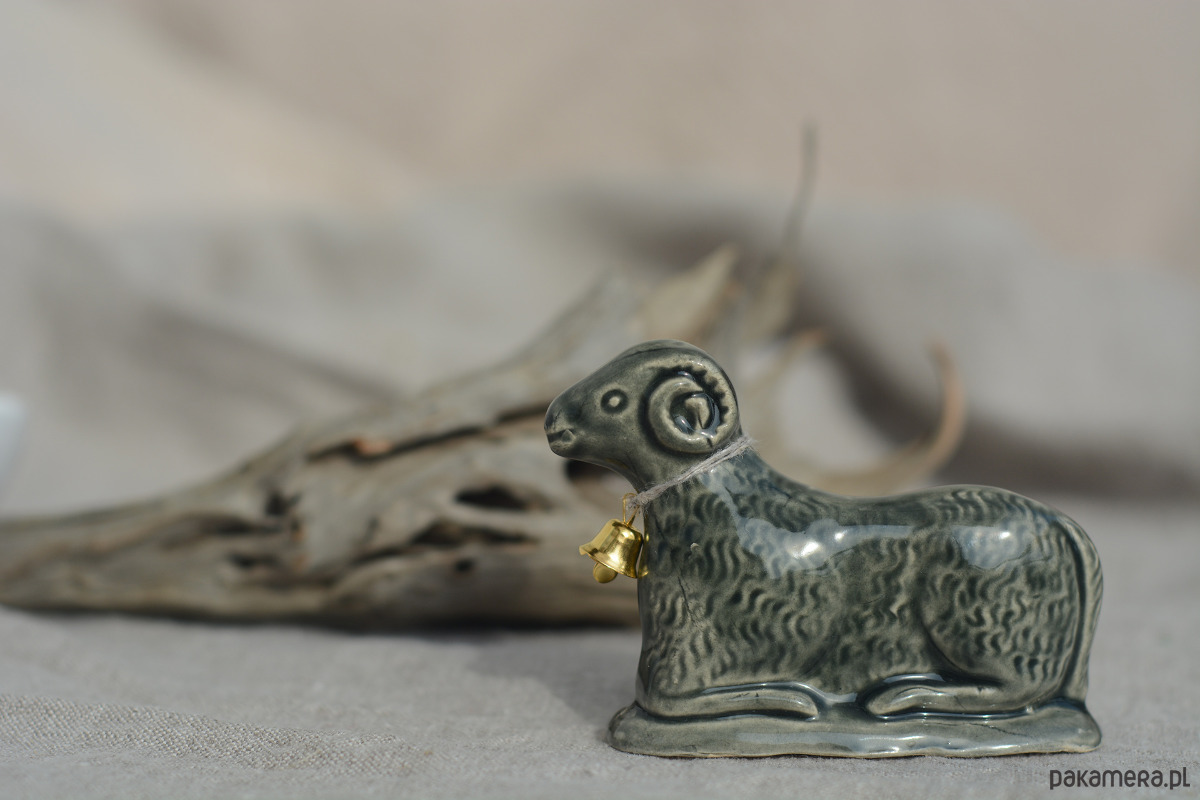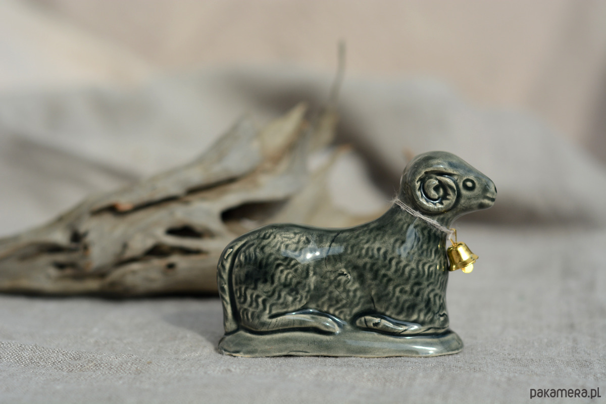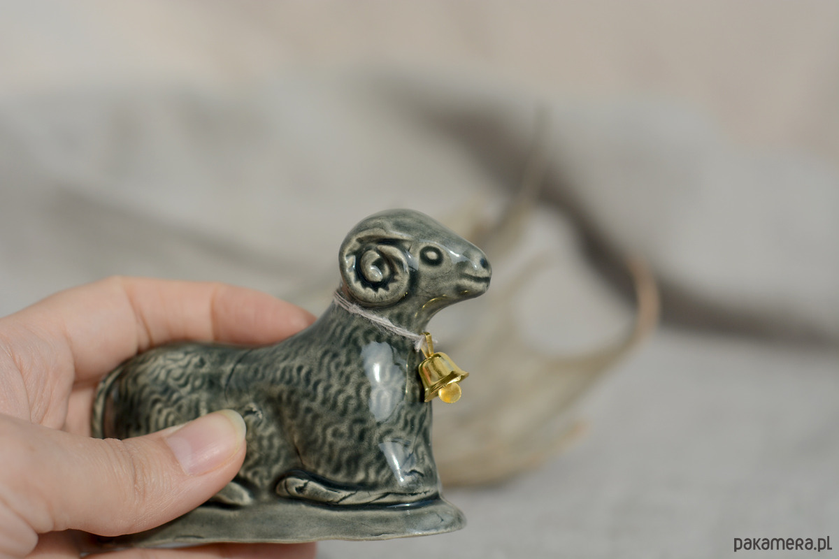 Ręcznie wylepiany i szkliwiony baranek powstał z chęci połączenia starego z nowym.