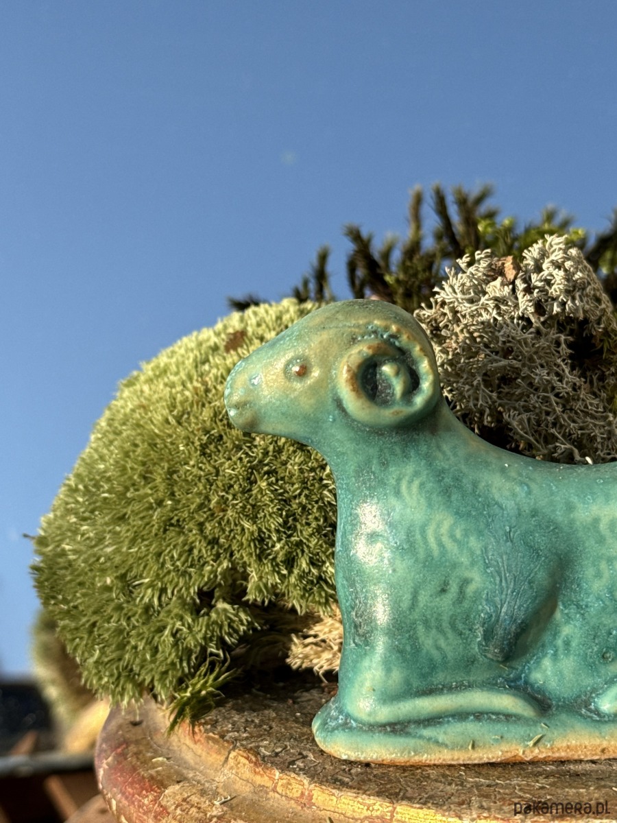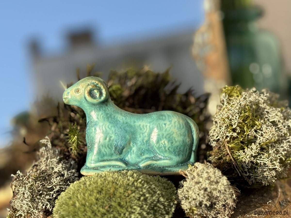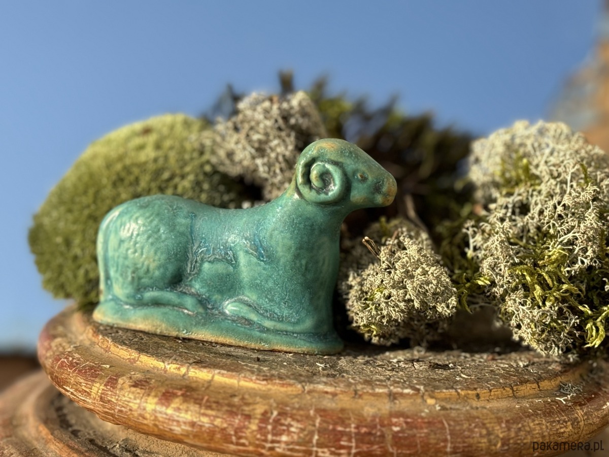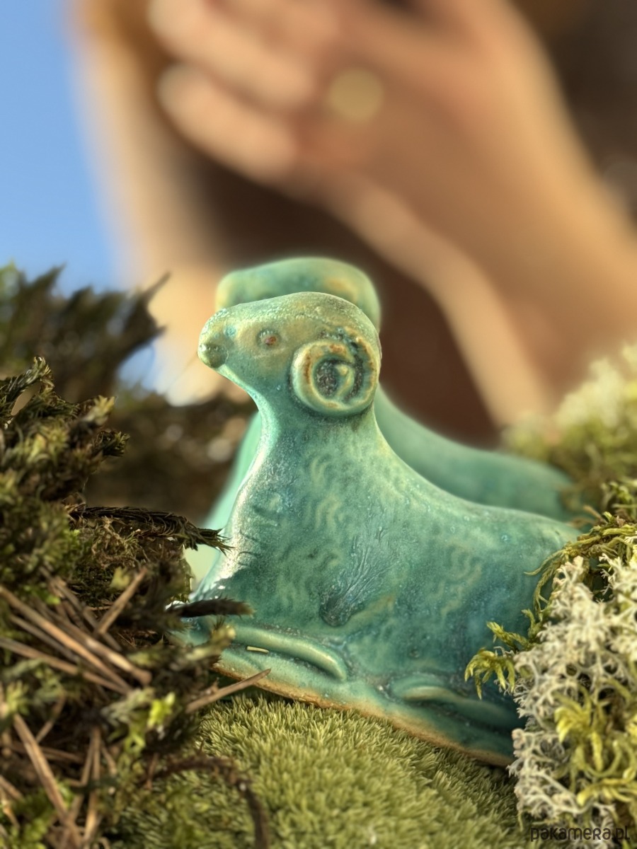 Ręcznie wylepiany i szkliwiony baranek powstał z chęci połączenia starego z nowym.