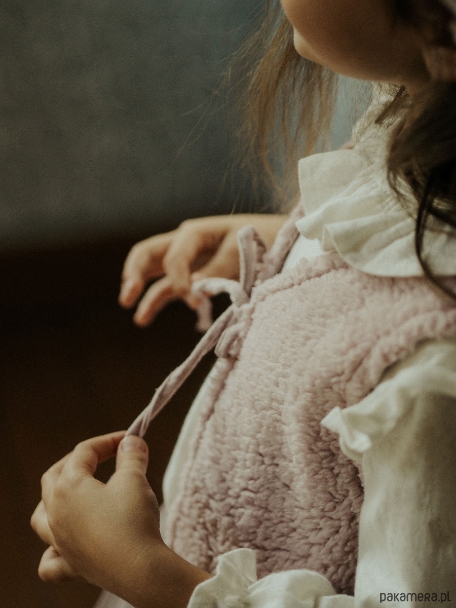Coś czego nie może zabraknąć w szafie Twojego dziecka! Cieplutka, mięsista kamizelka typu baranek, która fantastycznie sprawdzi się w chłodniejsze dni. To świetna alternatywna dla bluz i swetrów. Połącz ją ze spodniami, sukienką albo spódniczką i stwórz zestaw doskonały!
