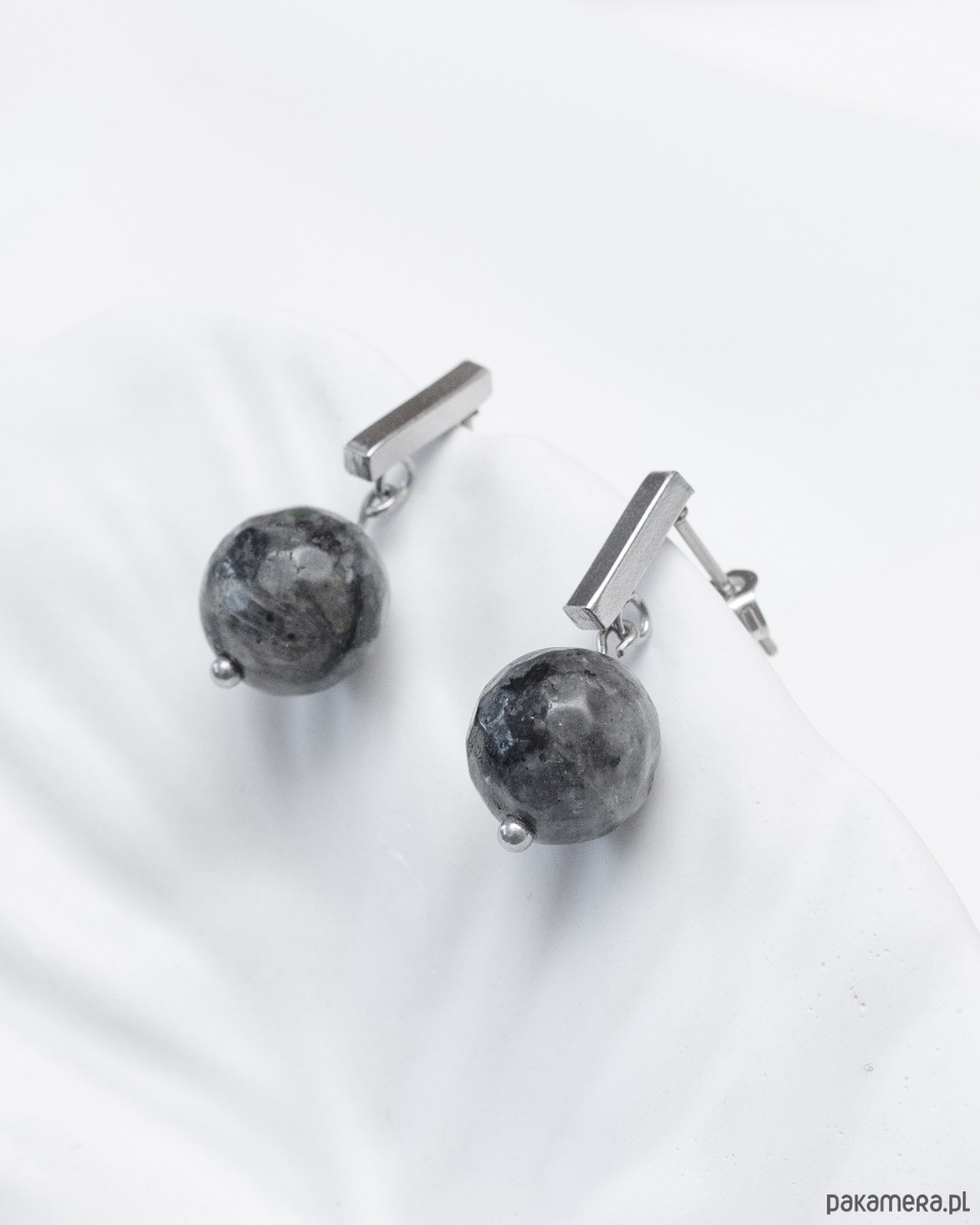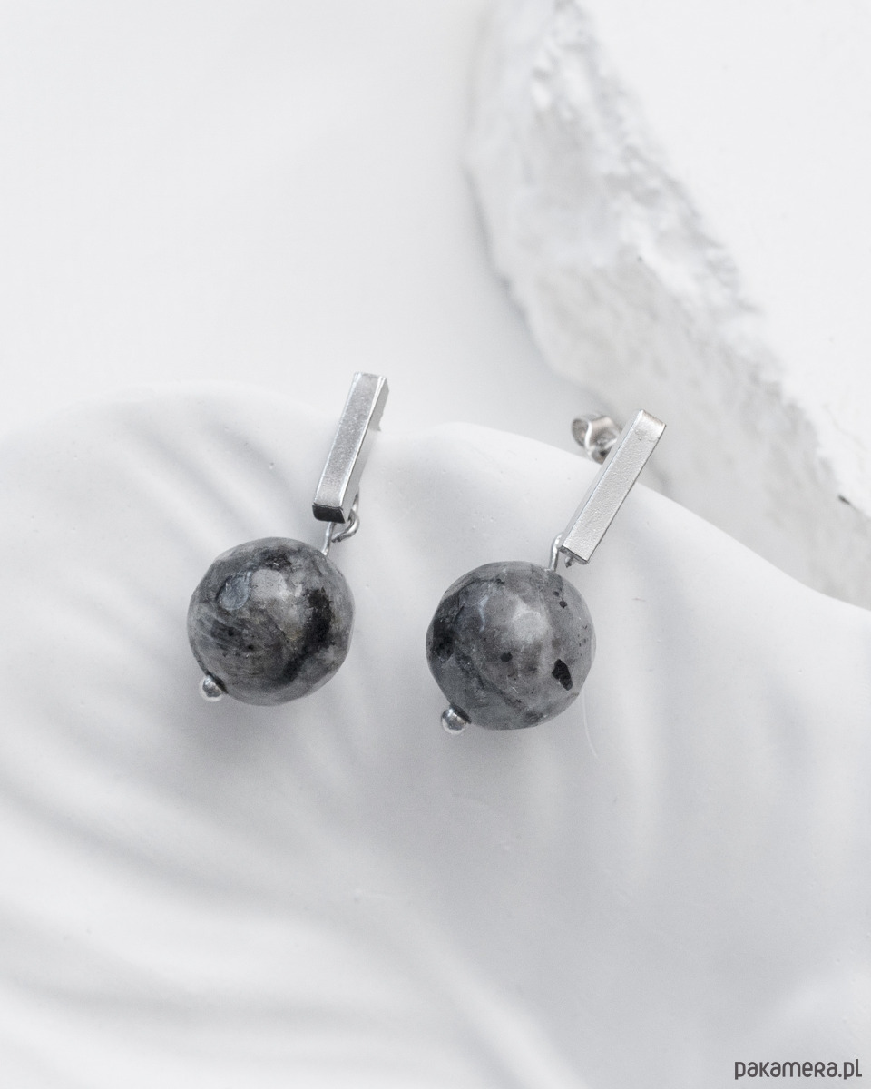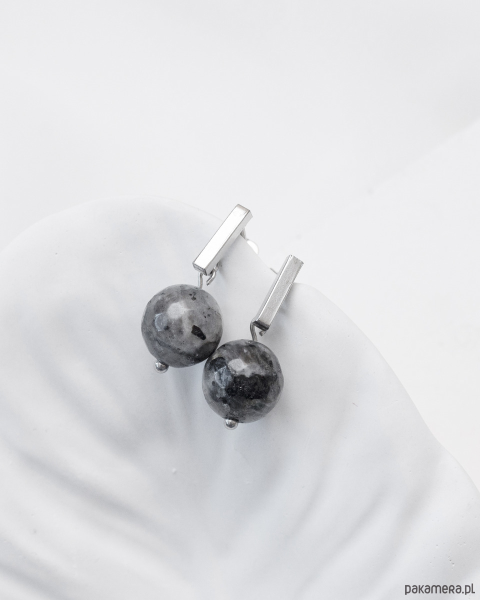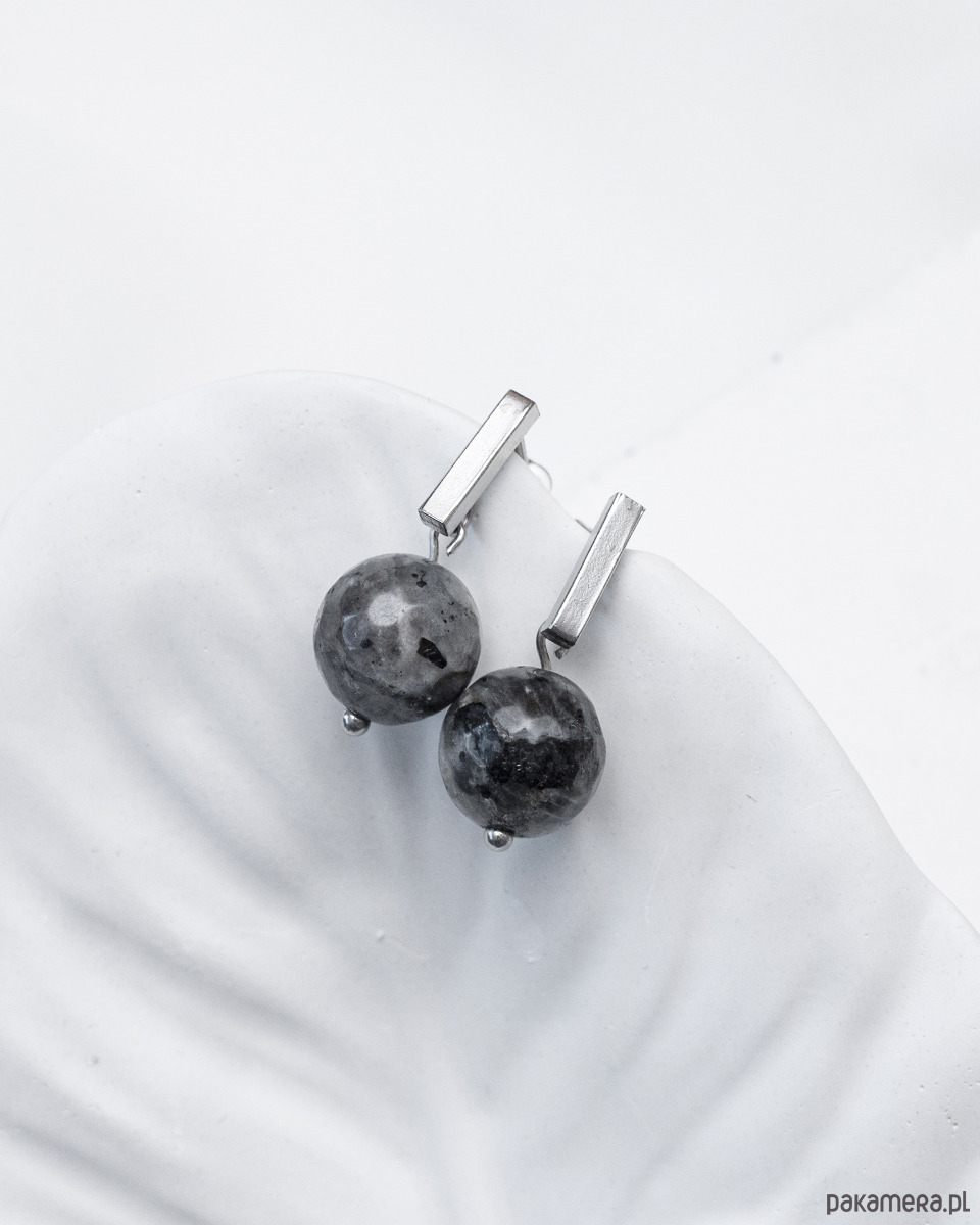 Bardzo delikatne kolczyki w kolorze srebrnym z larvikitem.