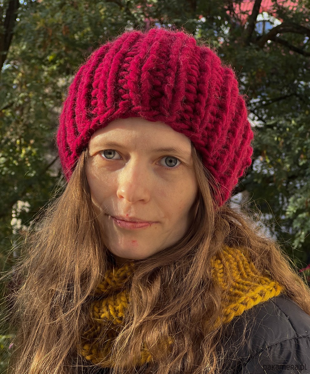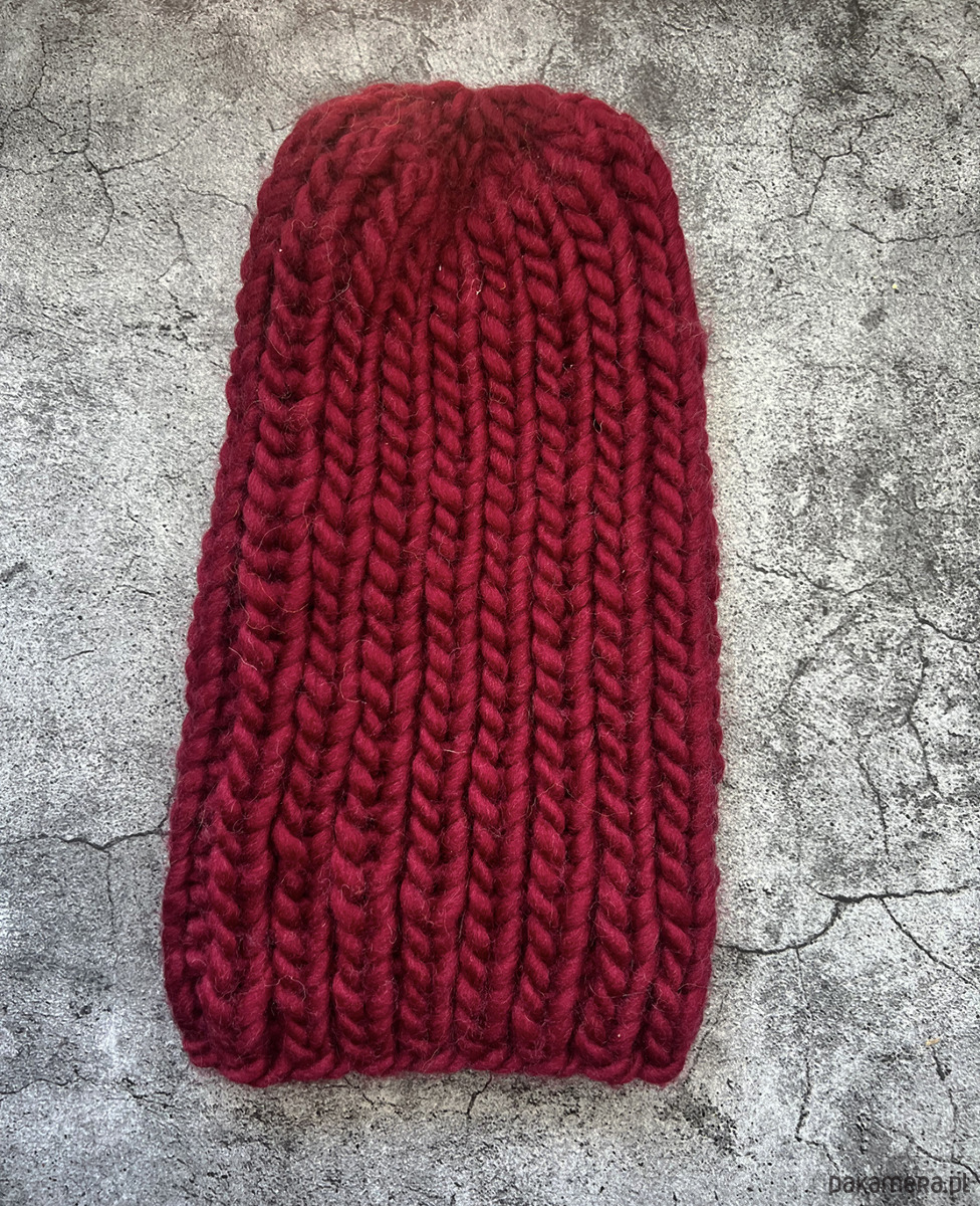 Rozmiar uniwersalny, czapka jest wykonana wzorem ściągaczowym i dopasowuje się idealnie do głowy. Długość ok. 37 cm