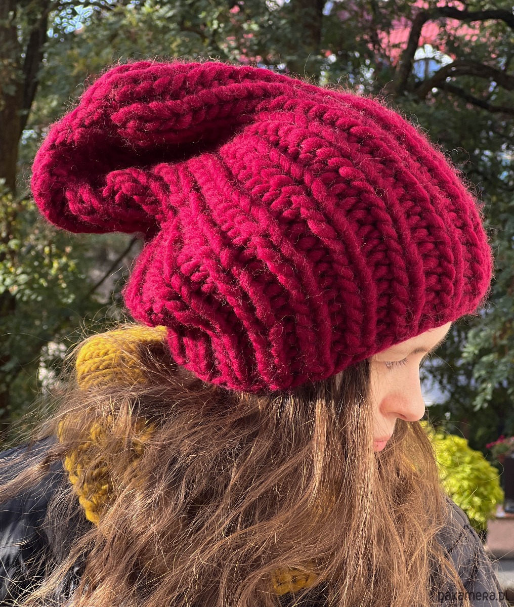 Bardzo gruba, ciepła zimowa czapka została wykonana z włóczki 100% wełna pochodząca z Norwegii. Czapka jest długa i mięsista, możesz nosić jako beanie, lub w wersji wywiniętej, wtedy podwójna warstwa wełny dogrzeje uszy.